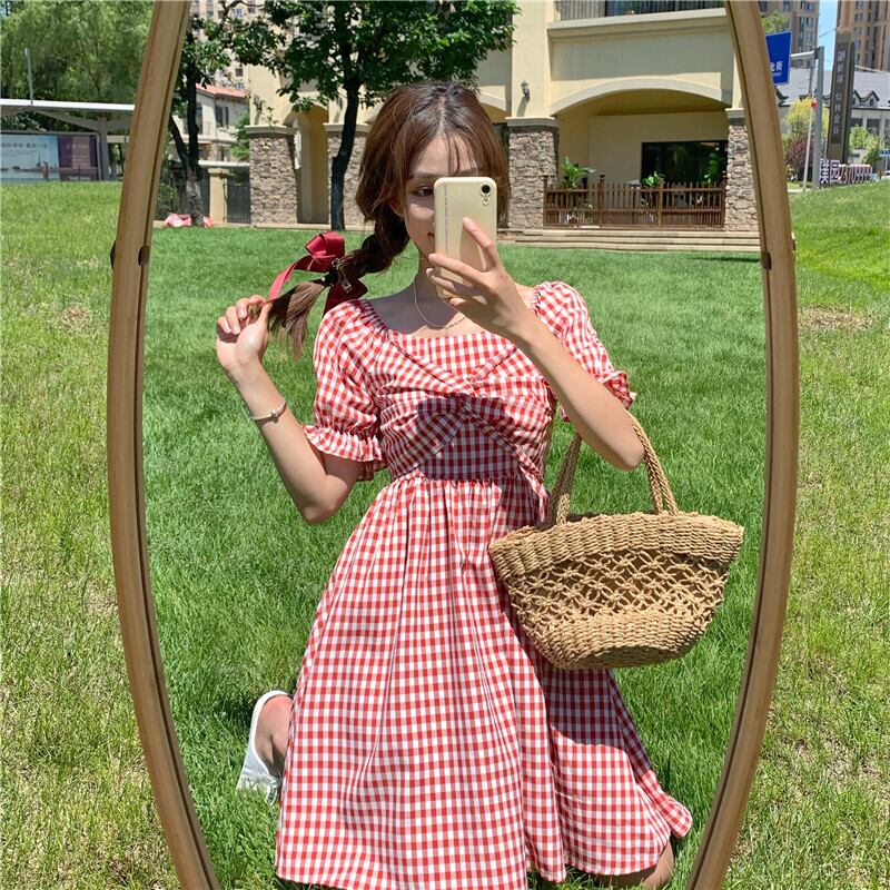 ✞ ロングチェック柄ウエストすっきり☆着痩せスリーブAラインスカート リボン スウィート ✞ゴスロリ SM ミリ 甘ロリ クラロリ 和ロリ エレガント 黒ロリ 姫ロリ 華ロリ BB-BB6060025