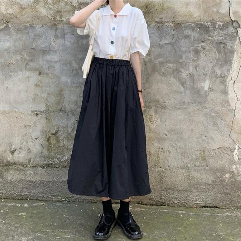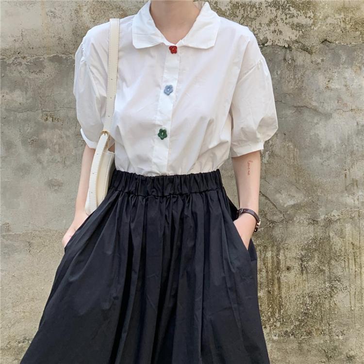 ✞ きれいめ☆スリーブシャツブラウスストレッチAラインスカート エラスティック 伸縮 スウィート フラワーデザイン ✞ゴスロリ SM ミリ 甘ロリ クラロリ 和ロリ エレガント 黒ロリ 姫ロリ 華ロリ BB-BB3207279