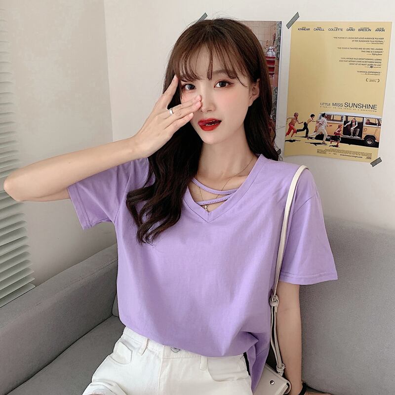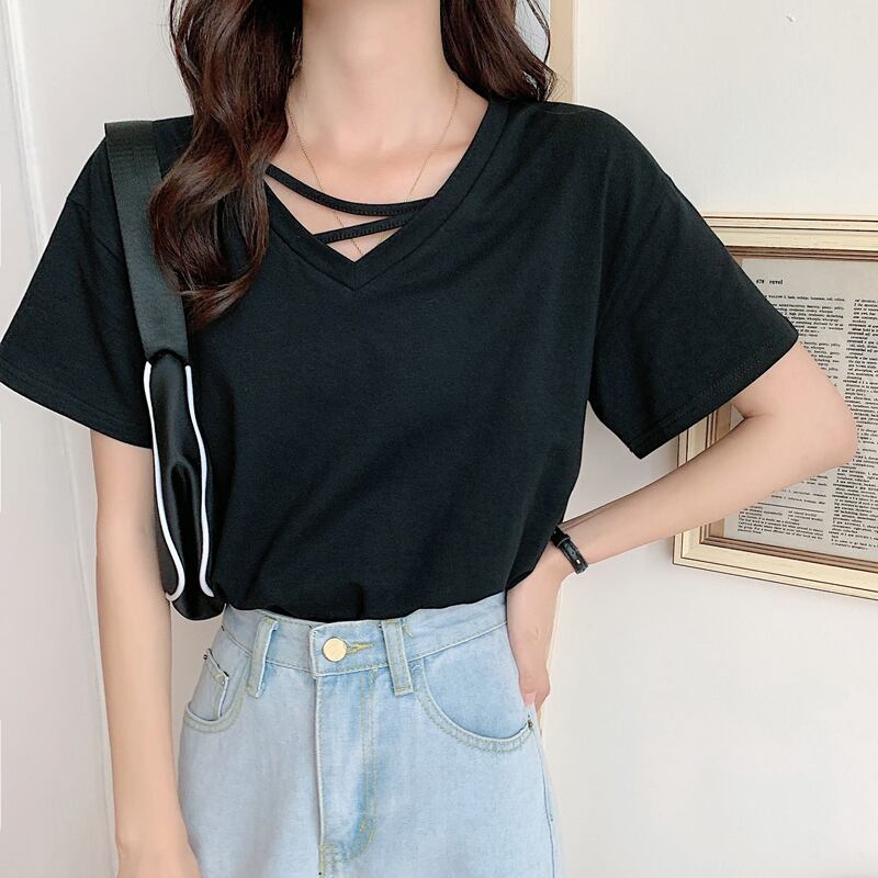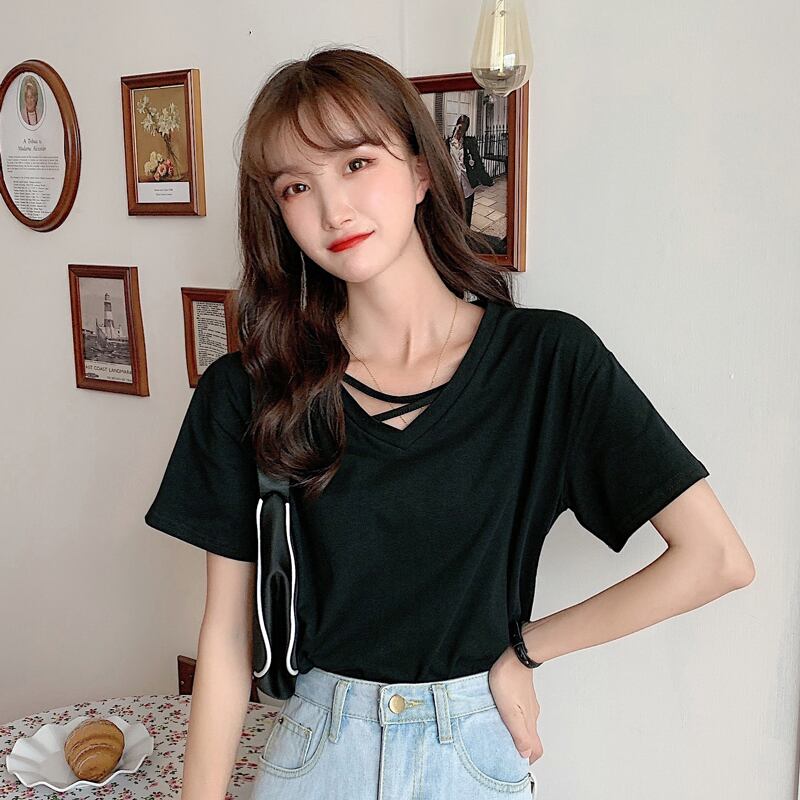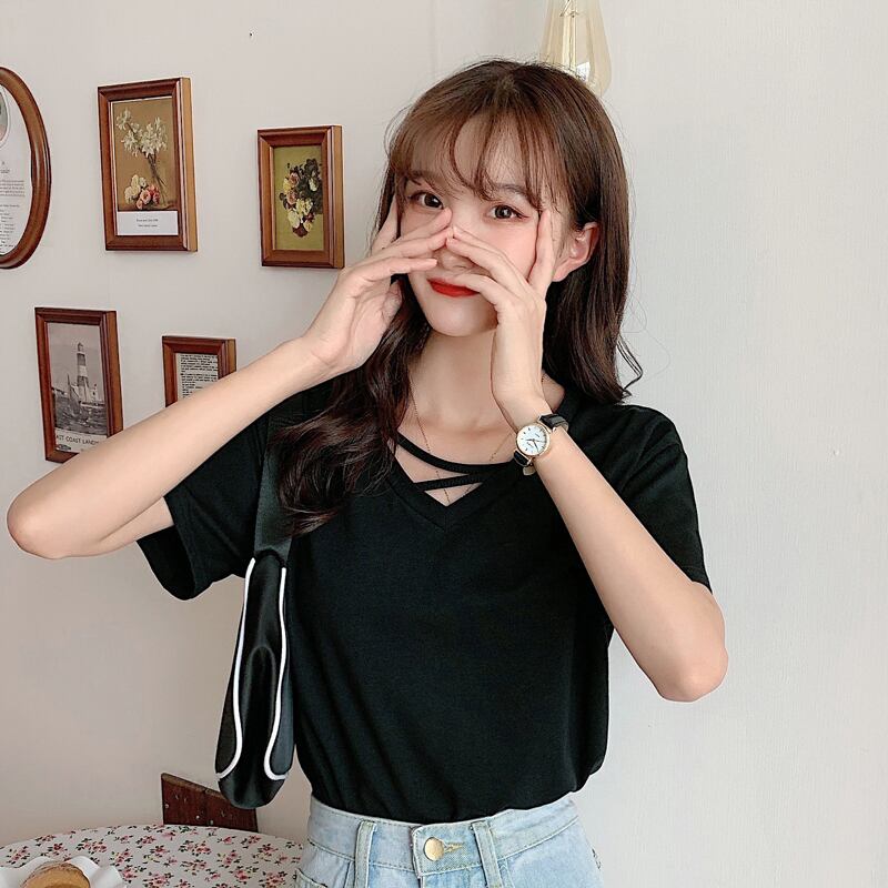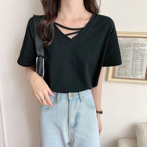 ✞ Tシャツ Vネック半袖スリーブソリッド カラートップス ショート ソリッドカラー ✞ゴスロリ SM ミリ 甘ロリ クラロリ 和ロリ エレガント 黒ロリ 姫ロリ 華ロリ BB-BB8291002