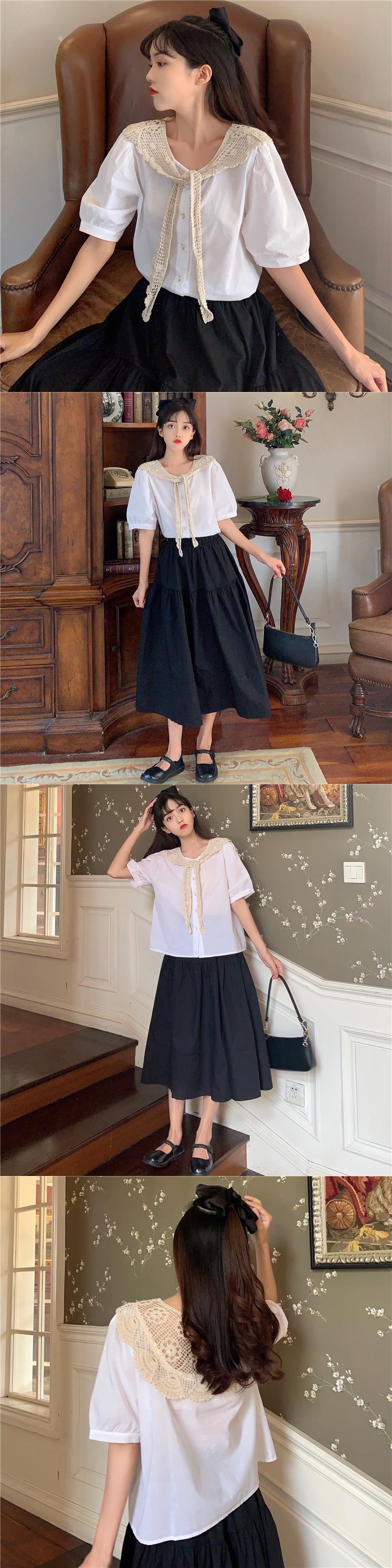 ✞ シャツブラウス花柄レース♥カワイイ♥ スウィート フラワーデザイン ✞ゴスロリ SM ミリ 甘ロリ クラロリ 和ロリ エレガント 黒ロリ 姫ロリ 華ロリ BB-BB9824357