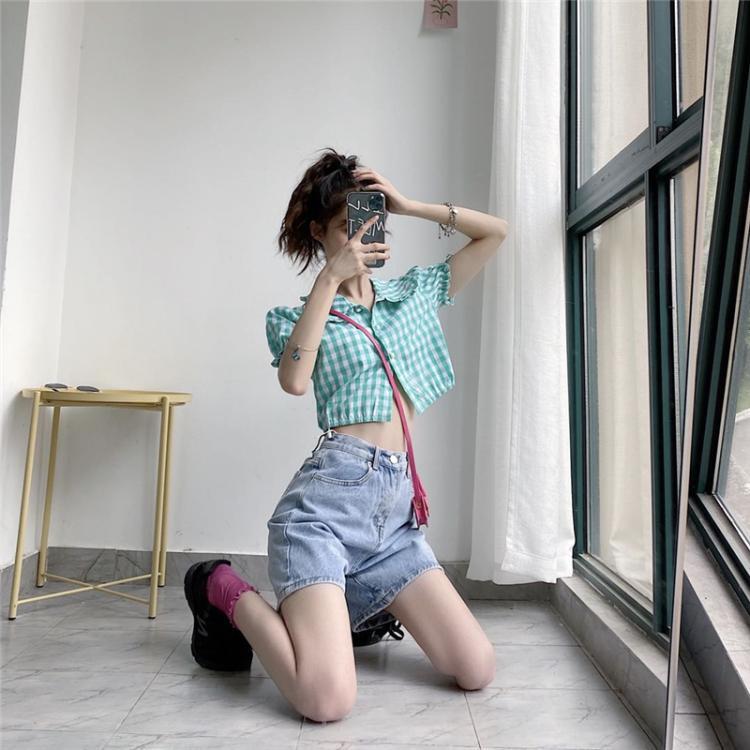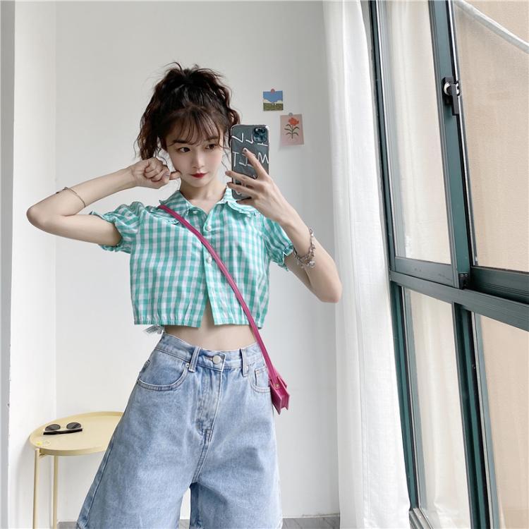 ✞ グリーンチェック柄スリーブシャツブラウスショートジャケット スウィート ガーリー ✞ゴスロリ SM ミリ 甘ロリ クラロリ 和ロリ エレガント 黒ロリ 姫ロリ 華ロリ BB-BB3491487