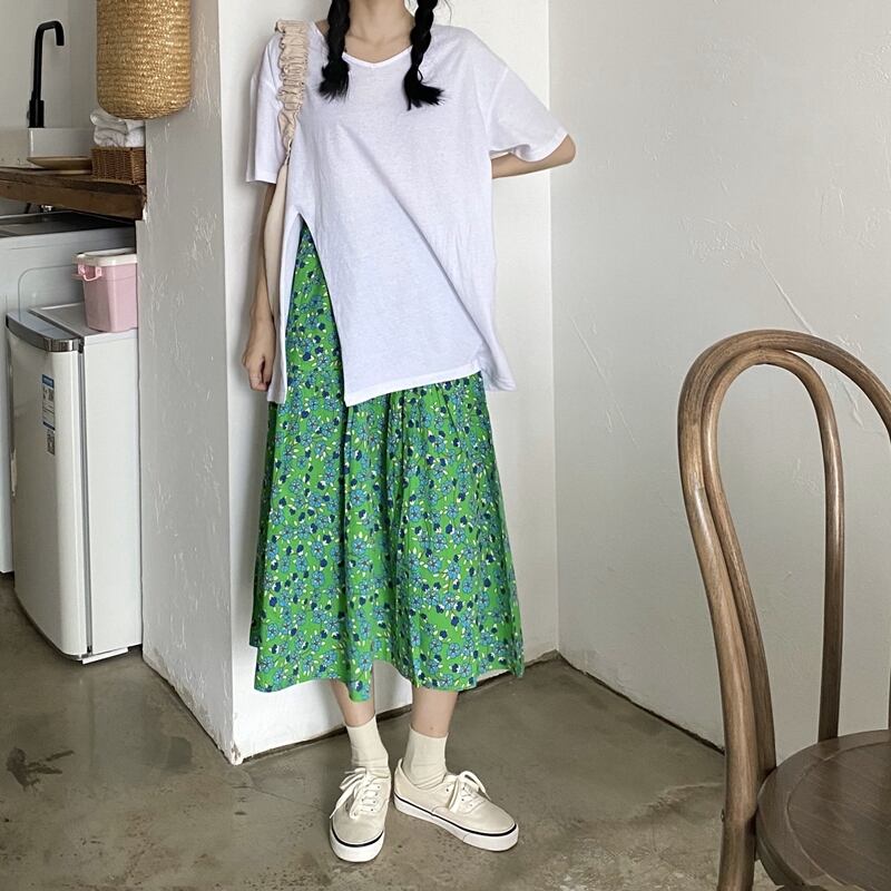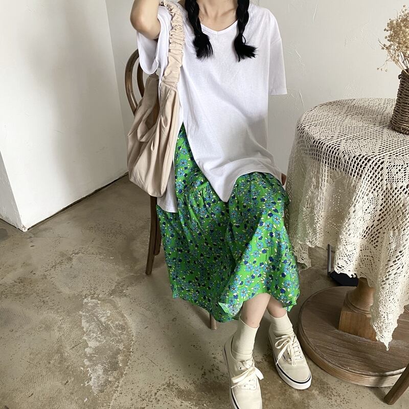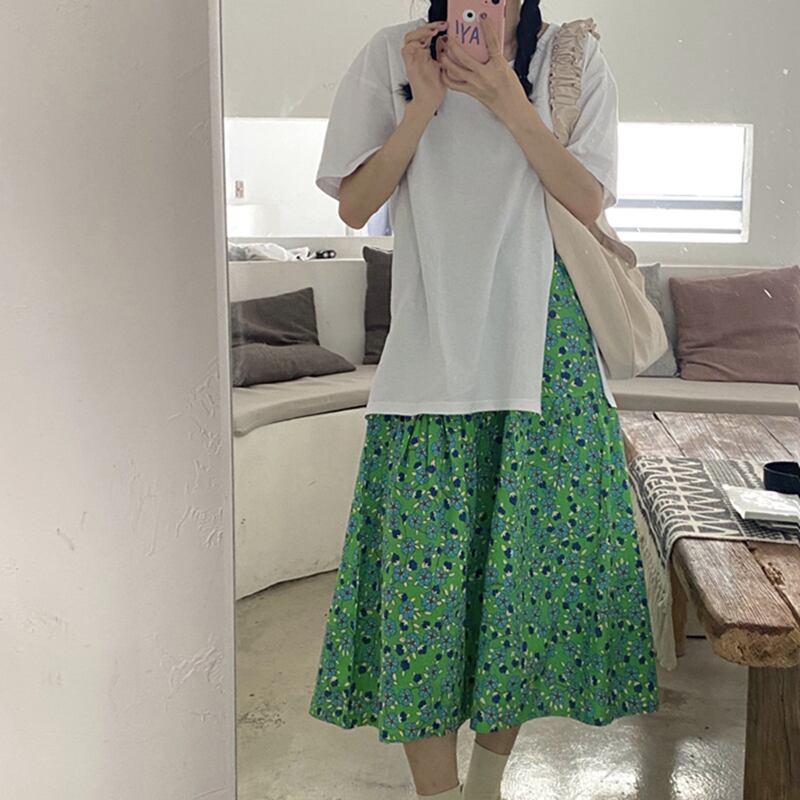 ✞ きれいめ☆白Tシャツ グリーン花柄スカート ホワイト ✞ゴスロリ SM ミリ 甘ロリ クラロリ 和ロリ エレガント 黒ロリ 姫ロリ 華ロリ BB-BB9875178