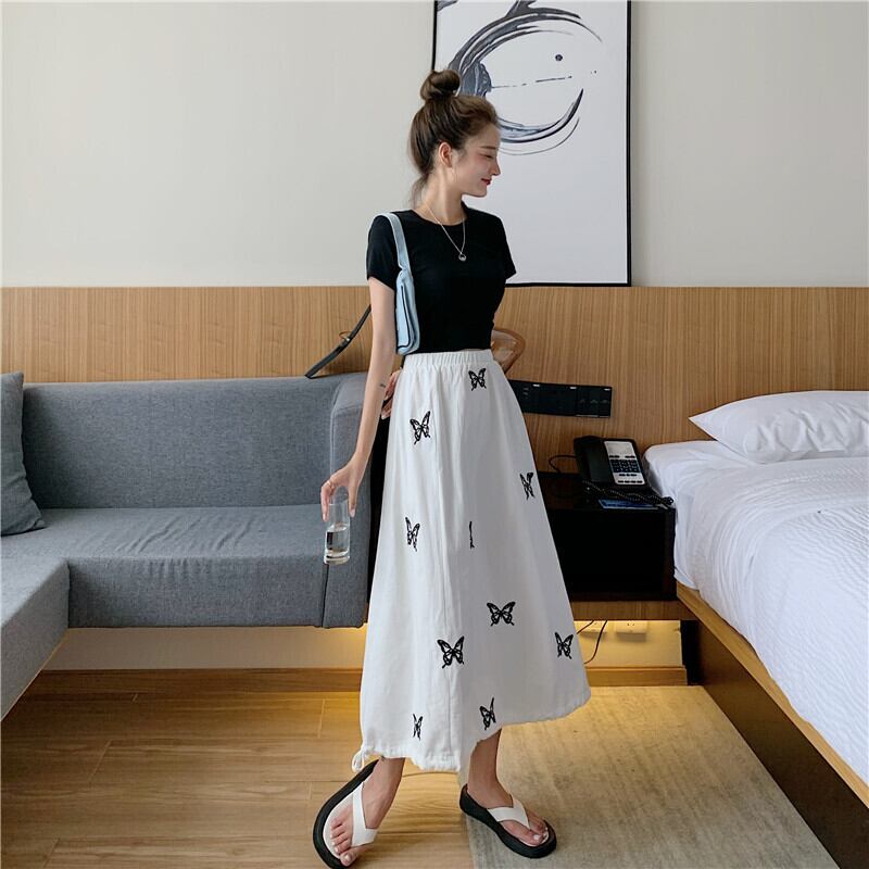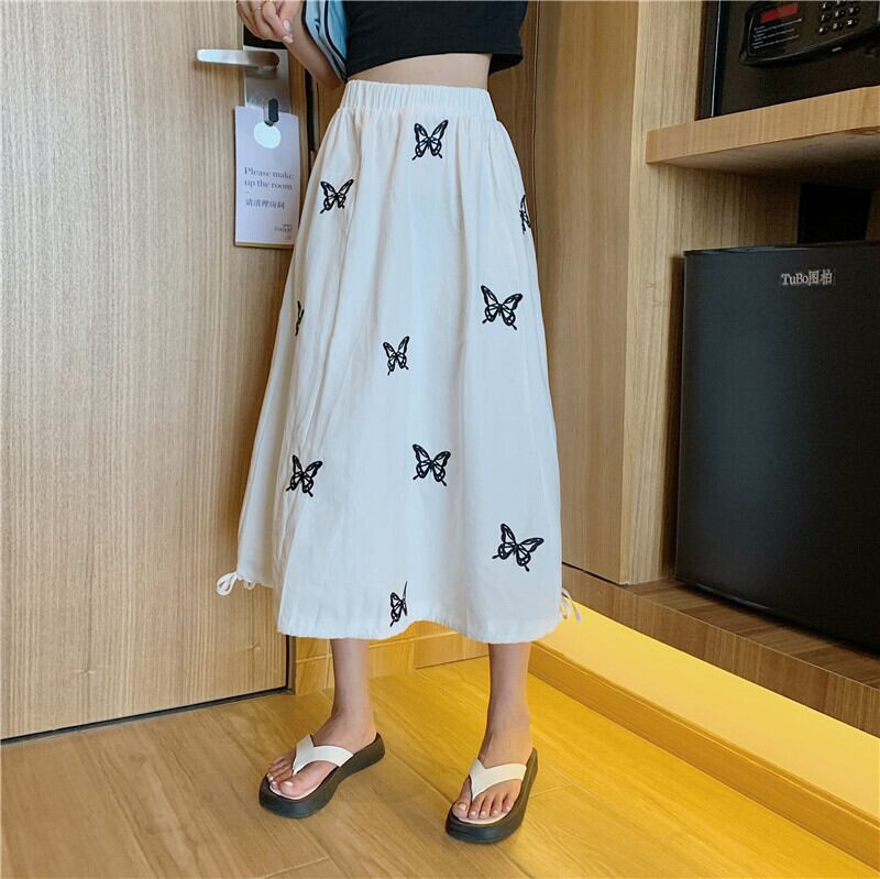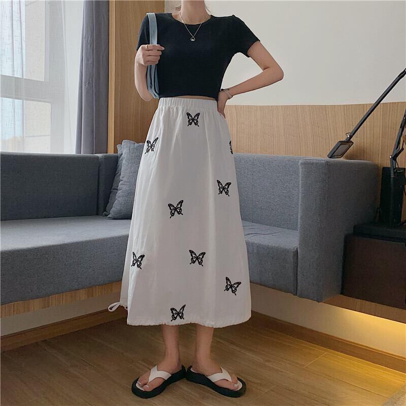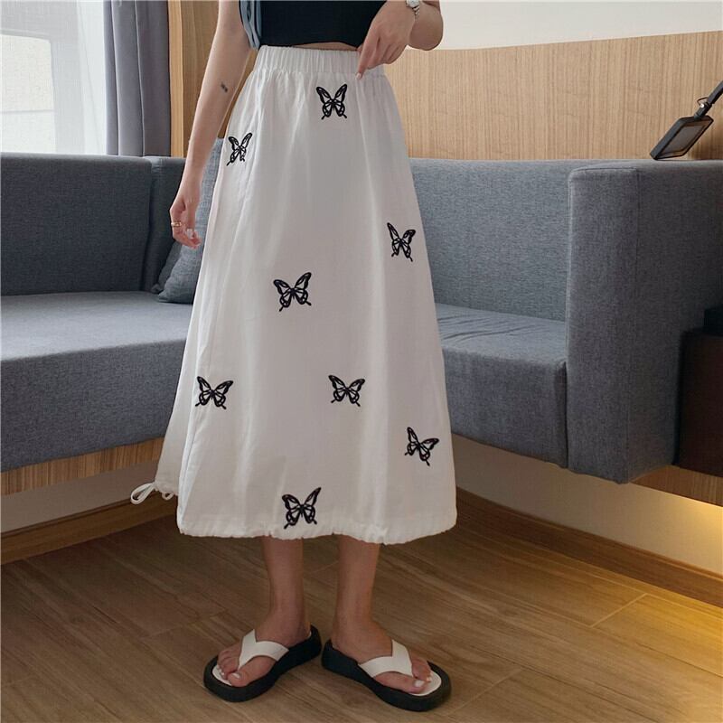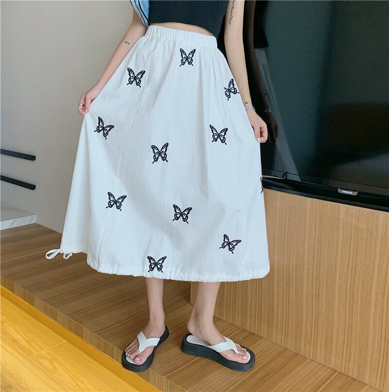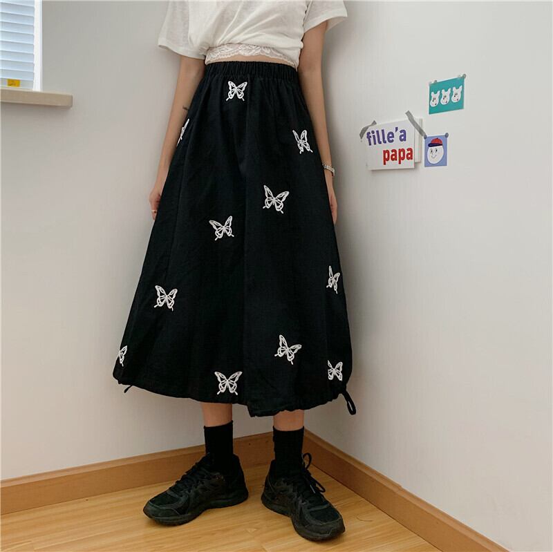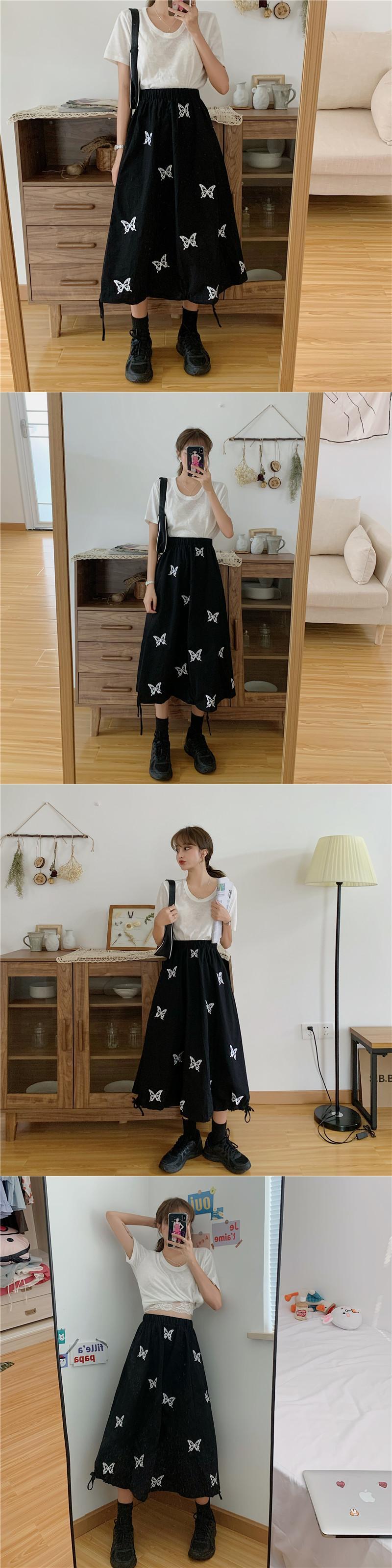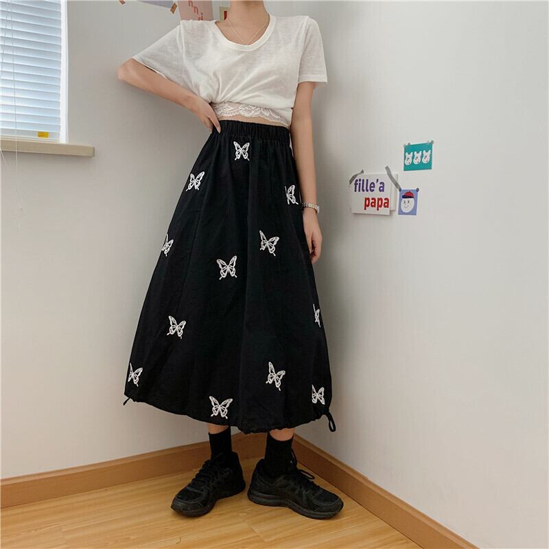 ✞ 刺繍ギャザーAライン蝶スカート ストレッチ カワイイ♥Butterflyデザイン エラスティック 伸縮 ✞ゴスロリ SM ミリ 甘ロリ クラロリ 和ロリ エレガント 黒ロリ 姫ロリ 華ロリ BB-BB1658053