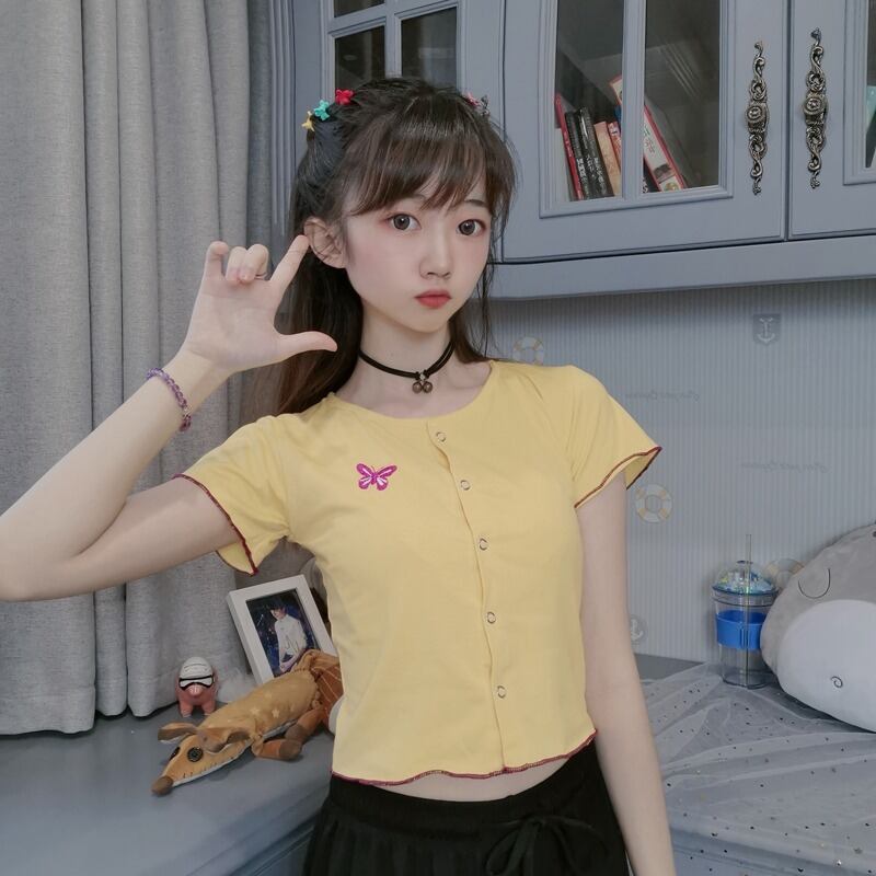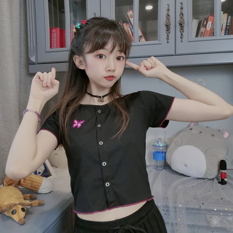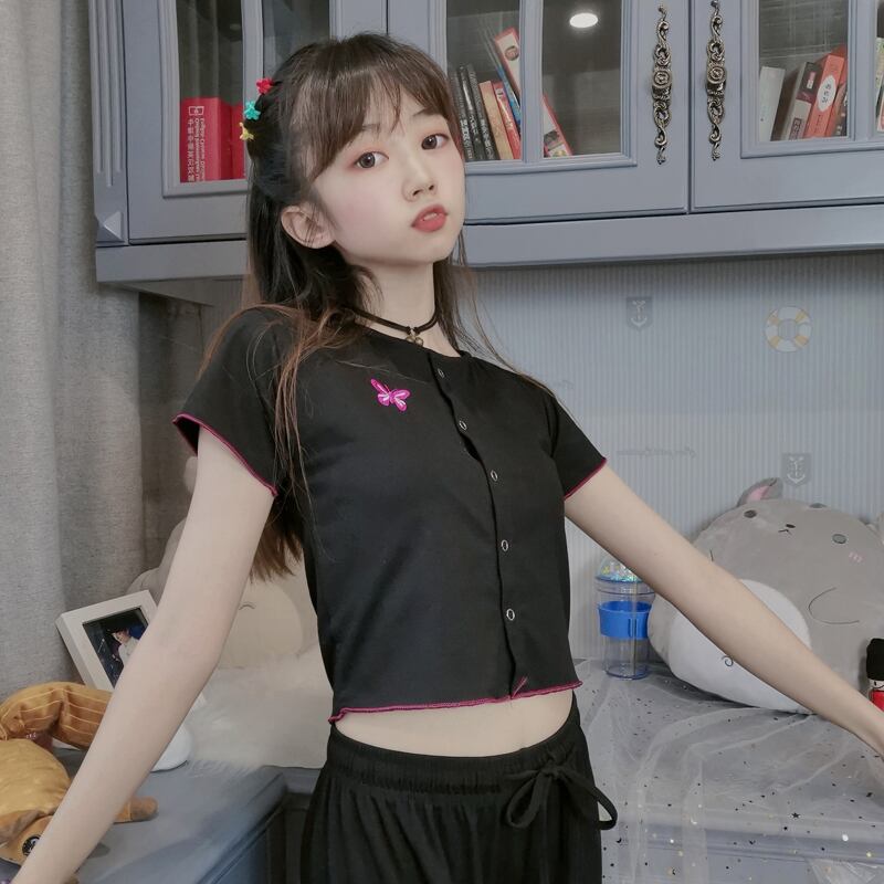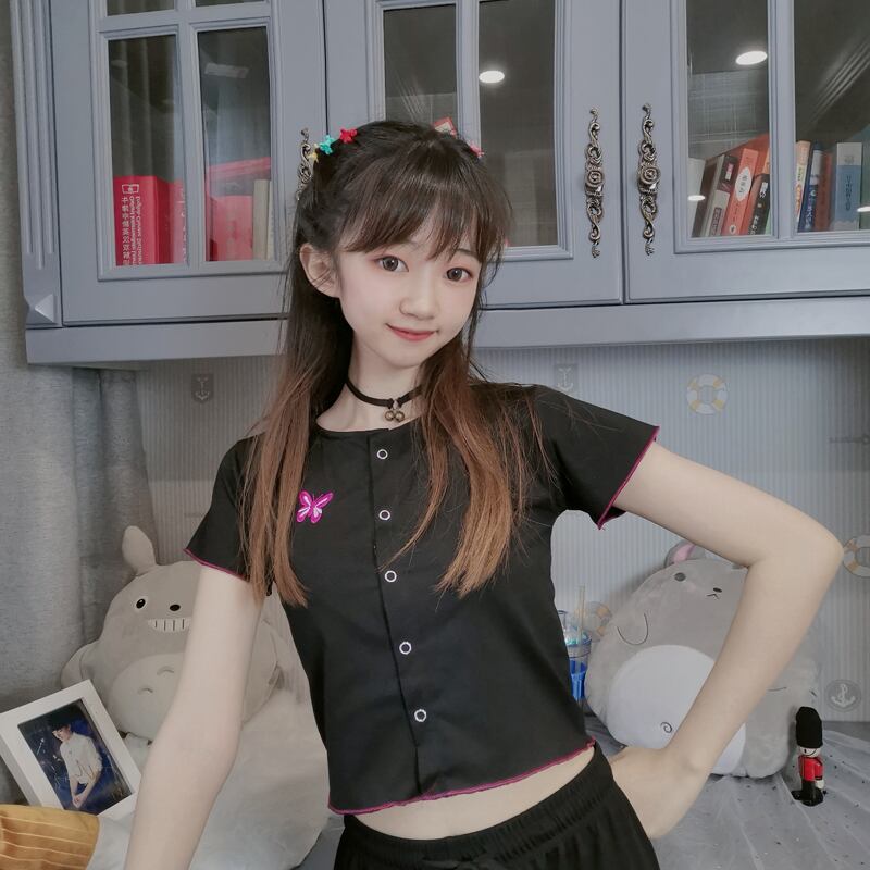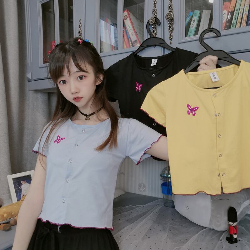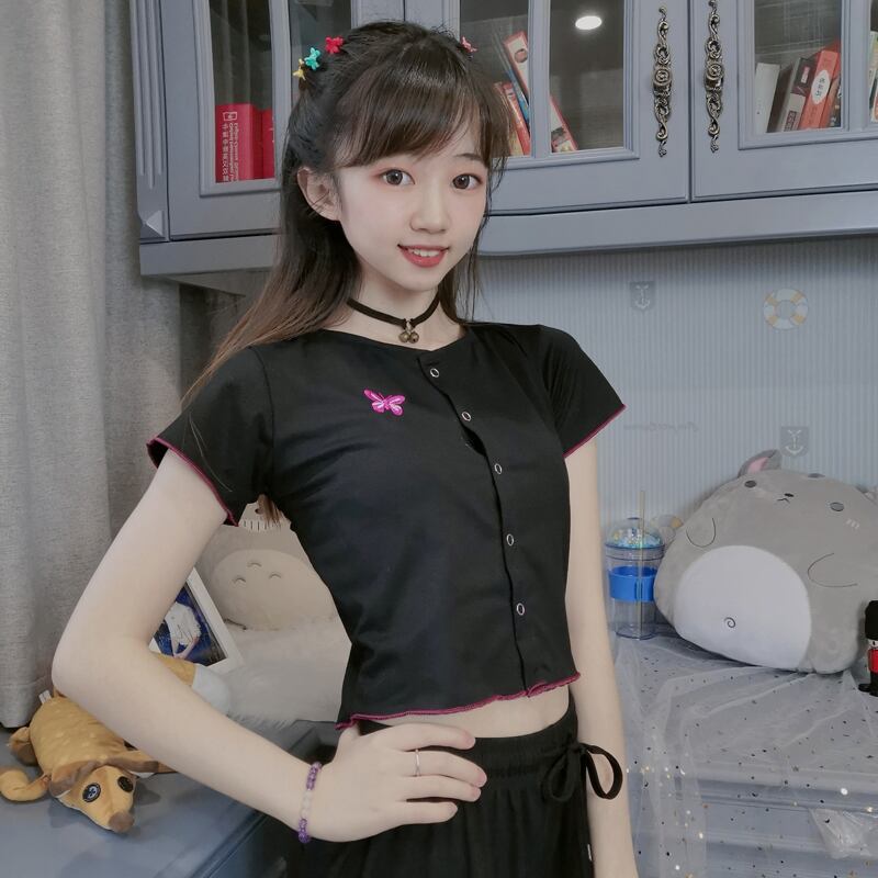 ✞ Butterflyデザイン スリムショートTシャツ 大人女子☆ 刺繍 スウィート ✞ゴスロリ SM ミリ 甘ロリ クラロリ 和ロリ エレガント 黒ロリ 姫ロリ 華ロリ BB-BB9286291