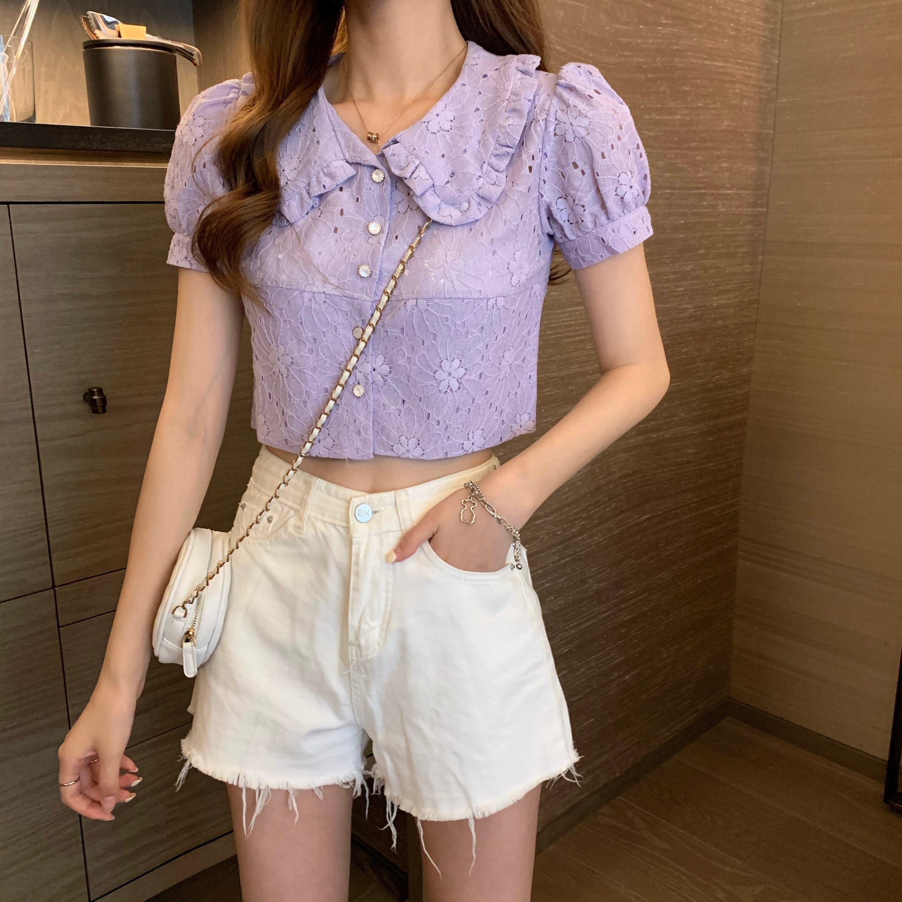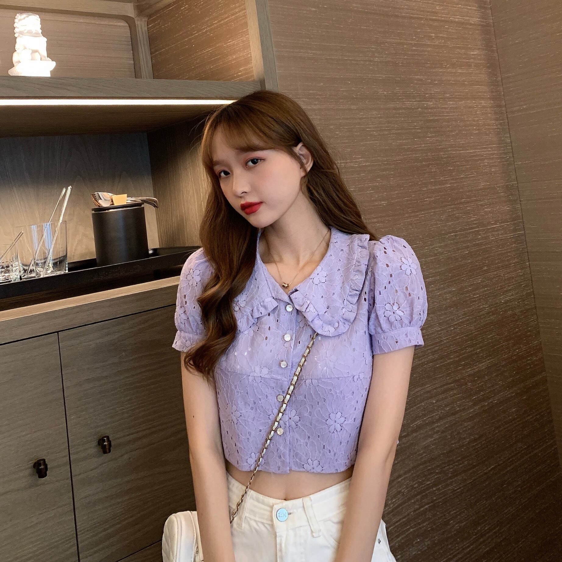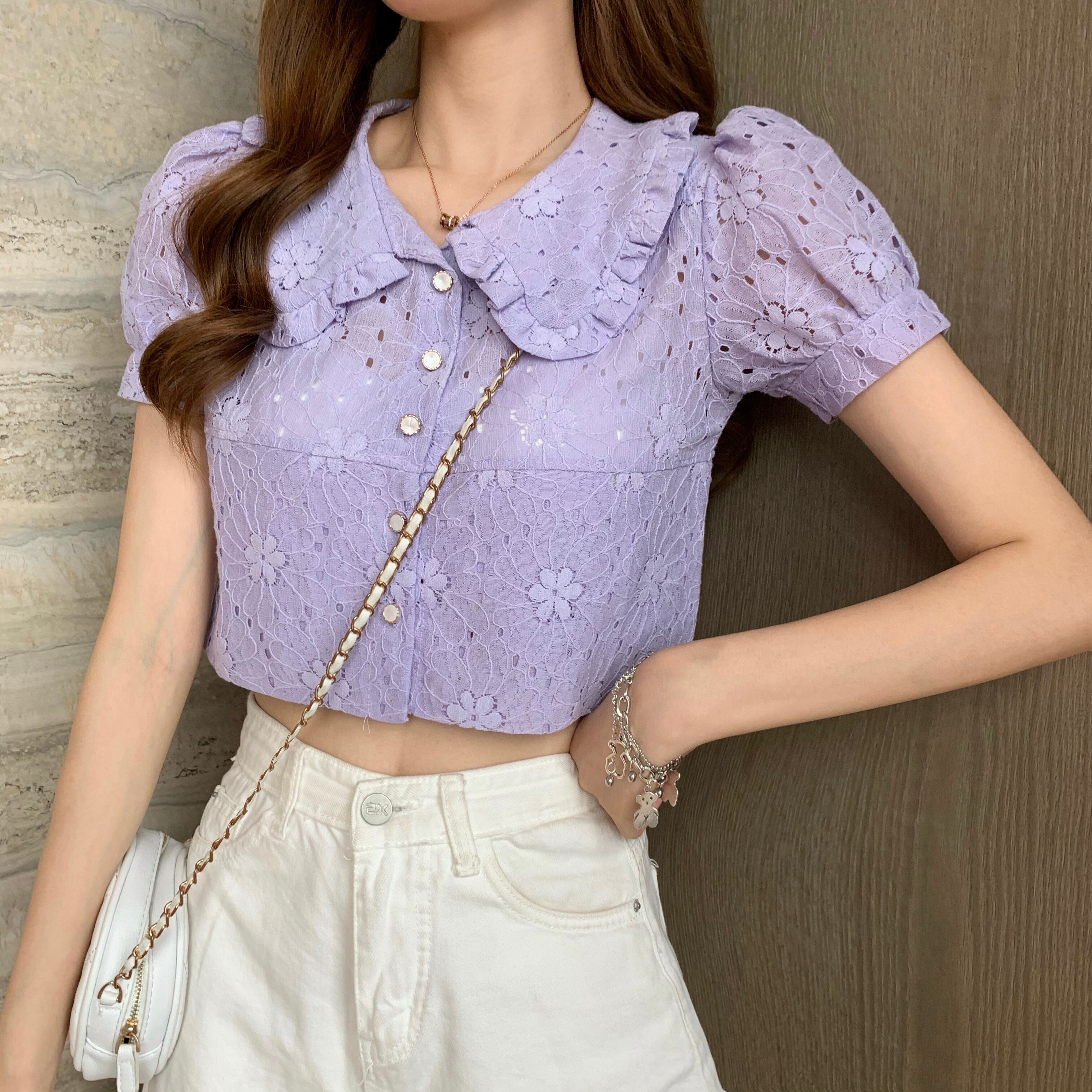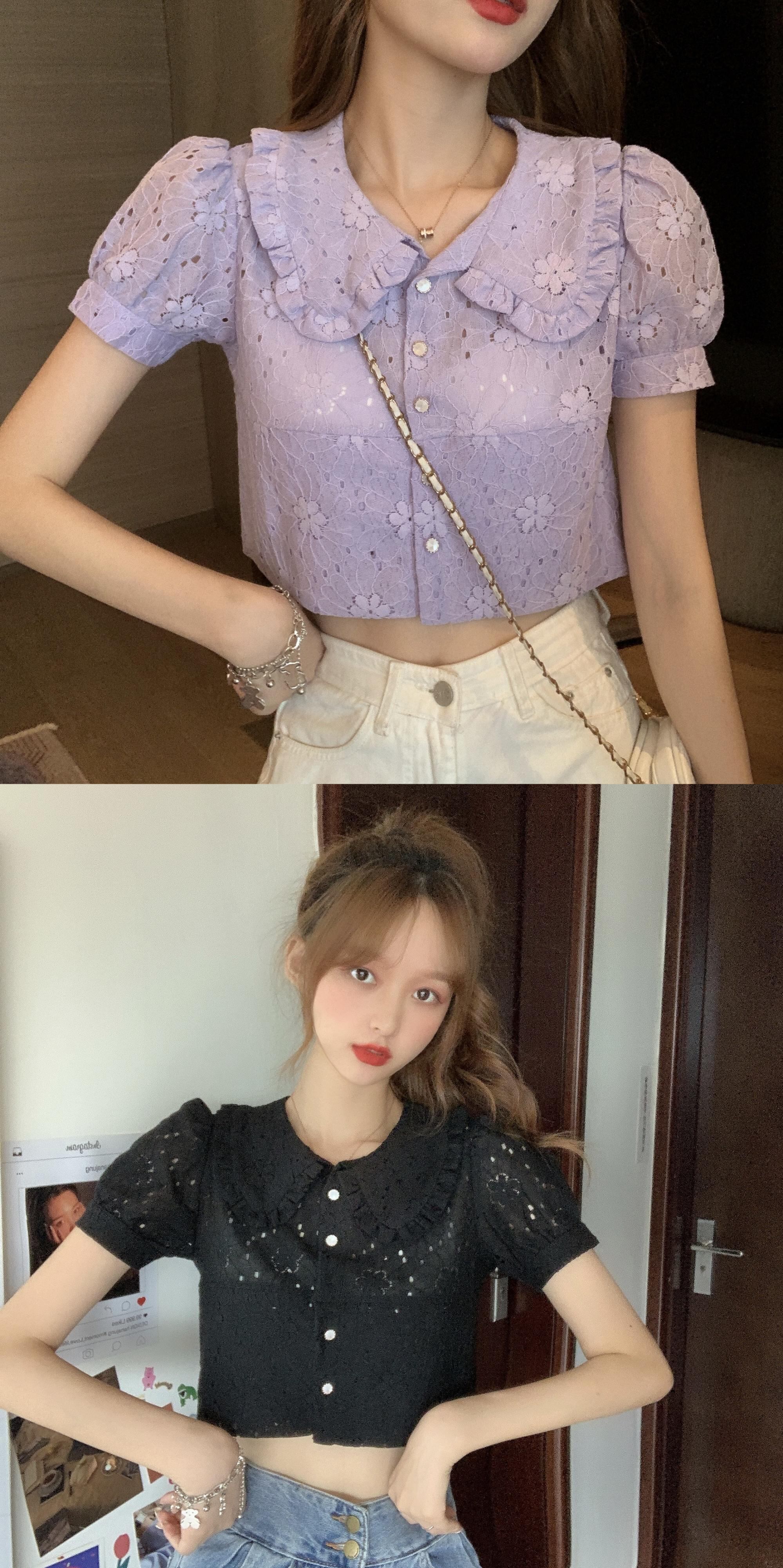 ✞ 花柄ショートシャツブラウストップス スウィート フラワーデザイン ✞ゴスロリ SM ミリ 甘ロリ クラロリ 和ロリ エレガント 黒ロリ 姫ロリ 華ロリ BB-BB8083787