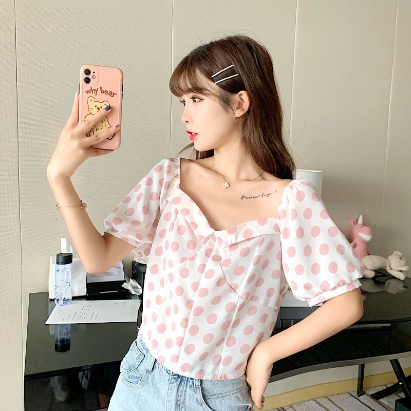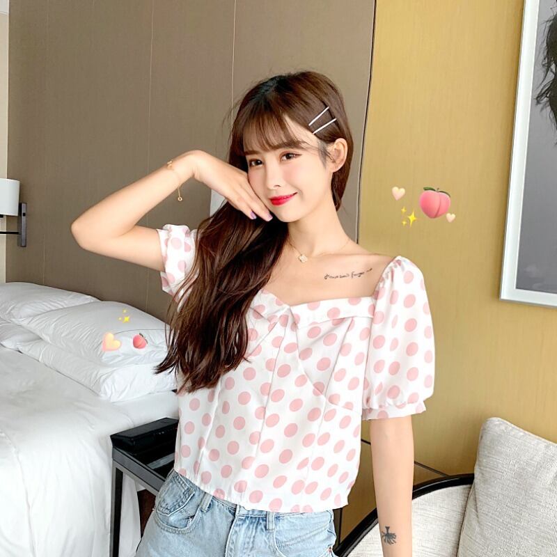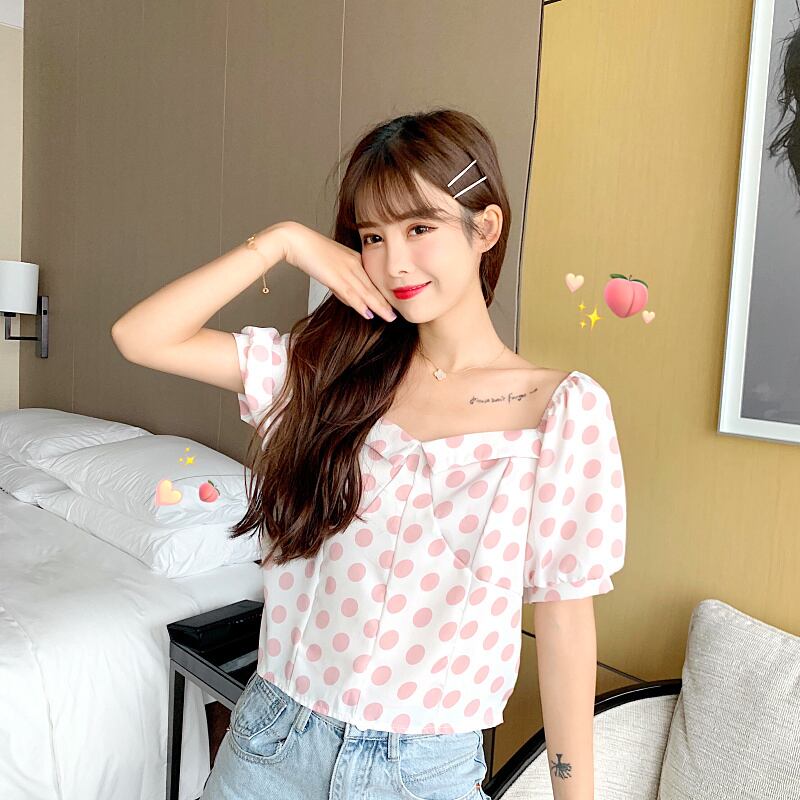 ✞ 水玉♥カワイイ♥ショートスリーブシャツブラウストップス スウィート スクウェア ✞ゴスロリ SM ミリ 甘ロリ クラロリ 和ロリ エレガント 黒ロリ 姫ロリ 華ロリ BB-BB7929008