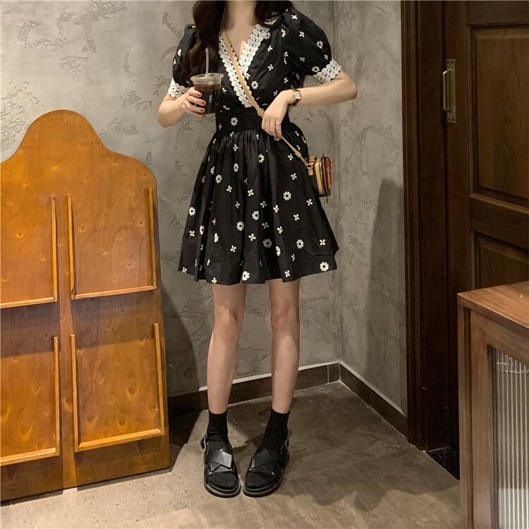 ✞ スカート 刺繍Vネック花柄ウエストすっきり☆着痩せスリーブ スウィート ステッチ ✞ゴスロリ SM ミリ 甘ロリ クラロリ 和ロリ エレガント 黒ロリ 姫ロリ 華ロリ BB-BB4031628