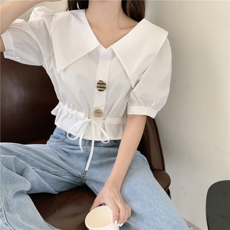 ✞ ウエストすっきり☆着痩せギャザースリーブショートシャツブラウス スウィート ✞ゴスロリ SM ミリ 甘ロリ クラロリ 和ロリ エレガント 黒ロリ 姫ロリ 華ロリ BB-BB4952039
