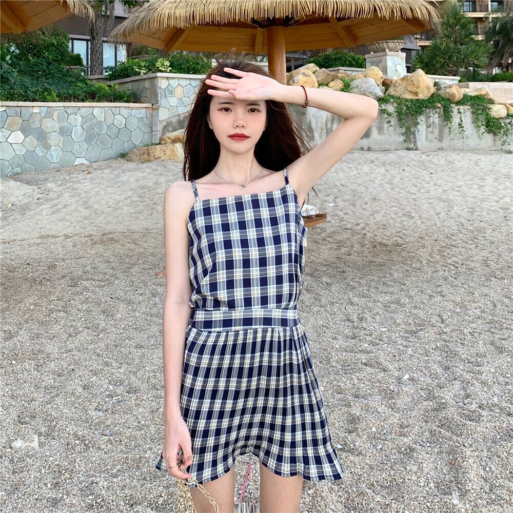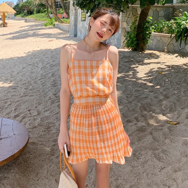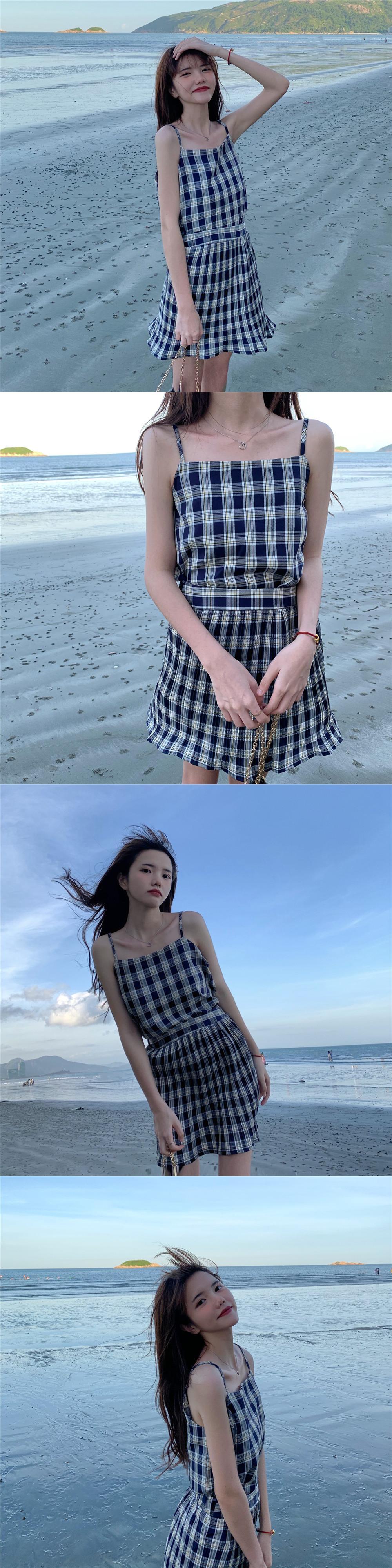 ✞ スタンダードチェック柄キャミソールトップス ♥カワイイ♥プリーツスカート Aライン レトロ スウィート ✞ゴスロリ SM ミリ 甘ロリ クラロリ 和ロリ エレガント 黒ロリ 姫ロリ 華ロリ BB-BB6277226