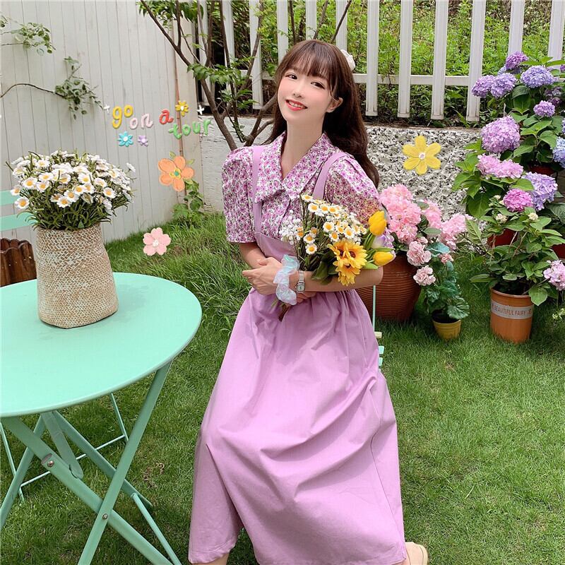 色:パープルストラップスカートシングルピース,ローズストラップスカートワンピース,紫のシャツワンピース,バラシャツワンピース