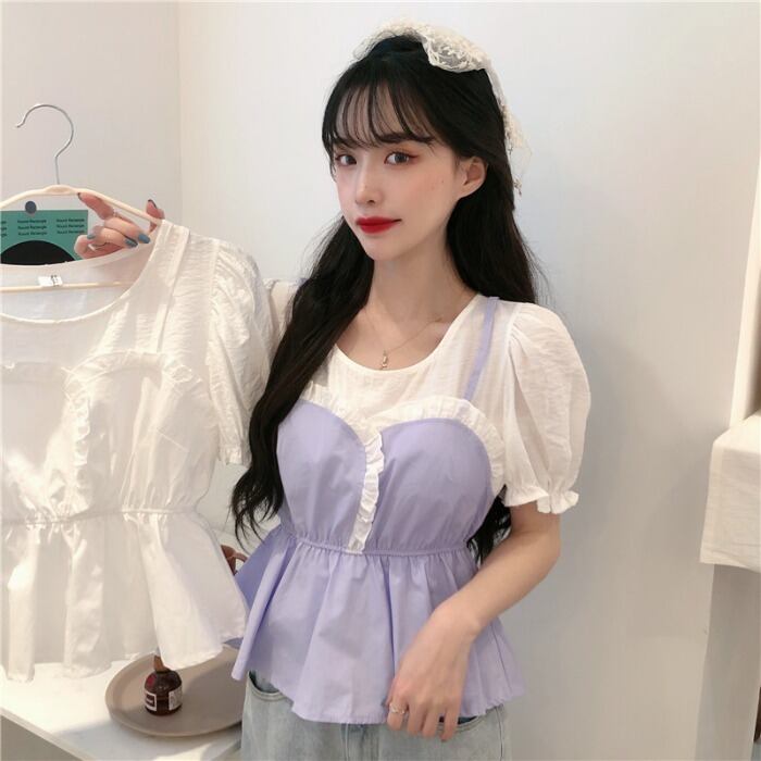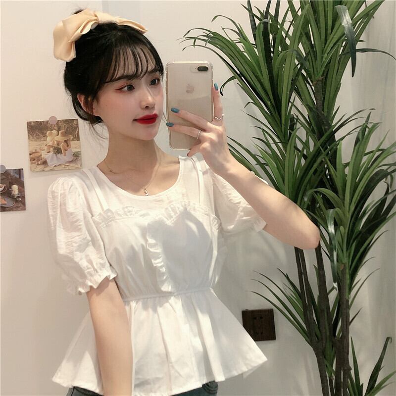 ✞ シャツブラウスウエストすっきり☆着痩せ半袖スリーブソリッド カラー ショート スウィート ソリッドカラー ✞ゴスロリ SM ミリ 甘ロリ クラロリ 和ロリ エレガント 黒ロリ 姫ロリ 華ロリ BB-BB9802002