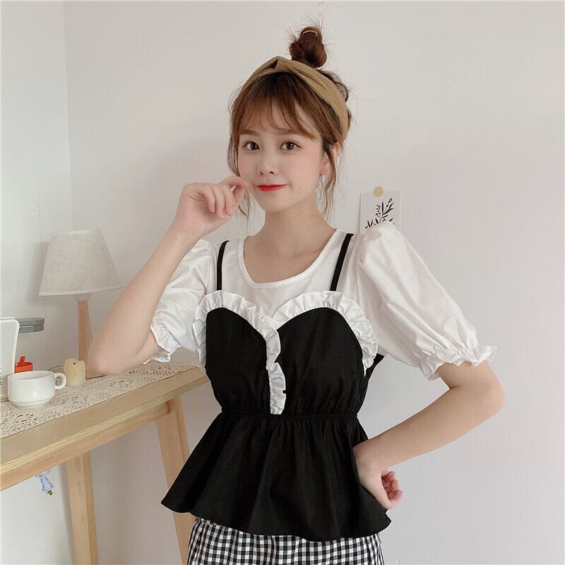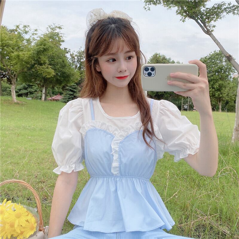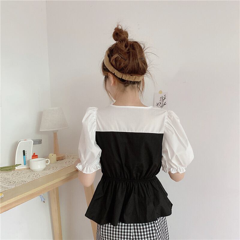✞ ラウンドネックカラースリーブショートシャツブラウス スウィート ステッチ ✞ゴスロリ SM ミリ 甘ロリ クラロリ 和ロリ エレガント 黒ロリ 姫ロリ 華ロリ BB-BB5720774