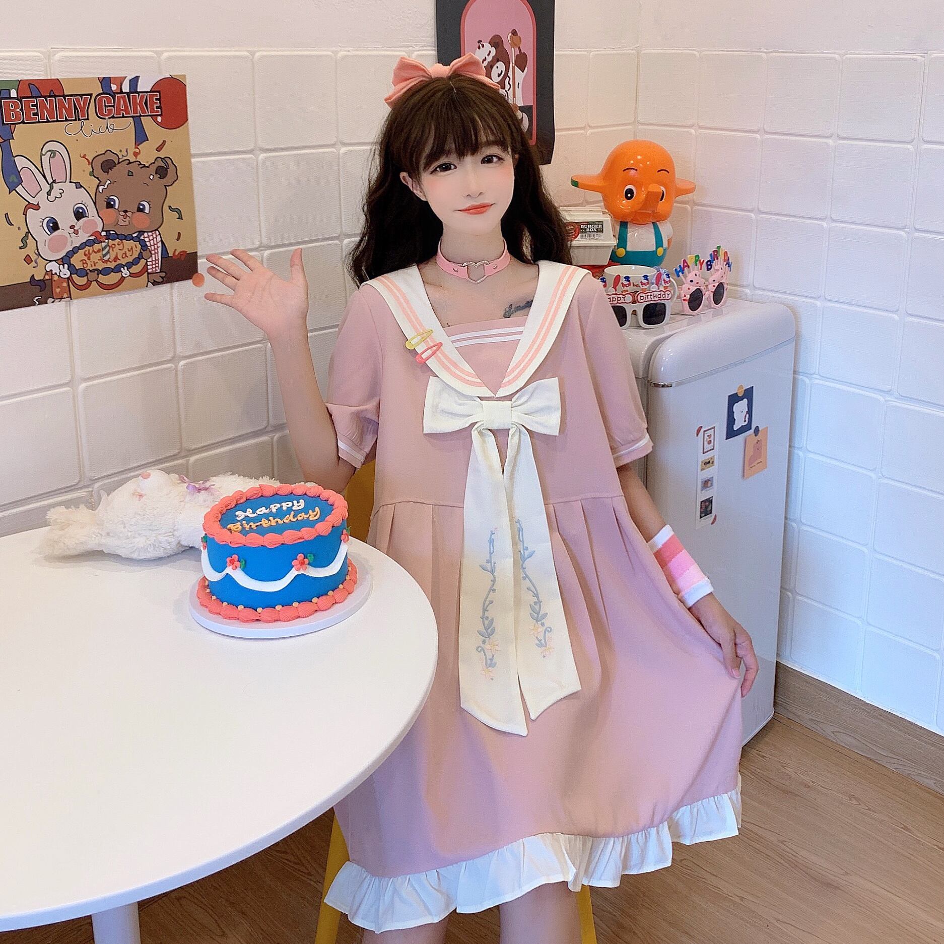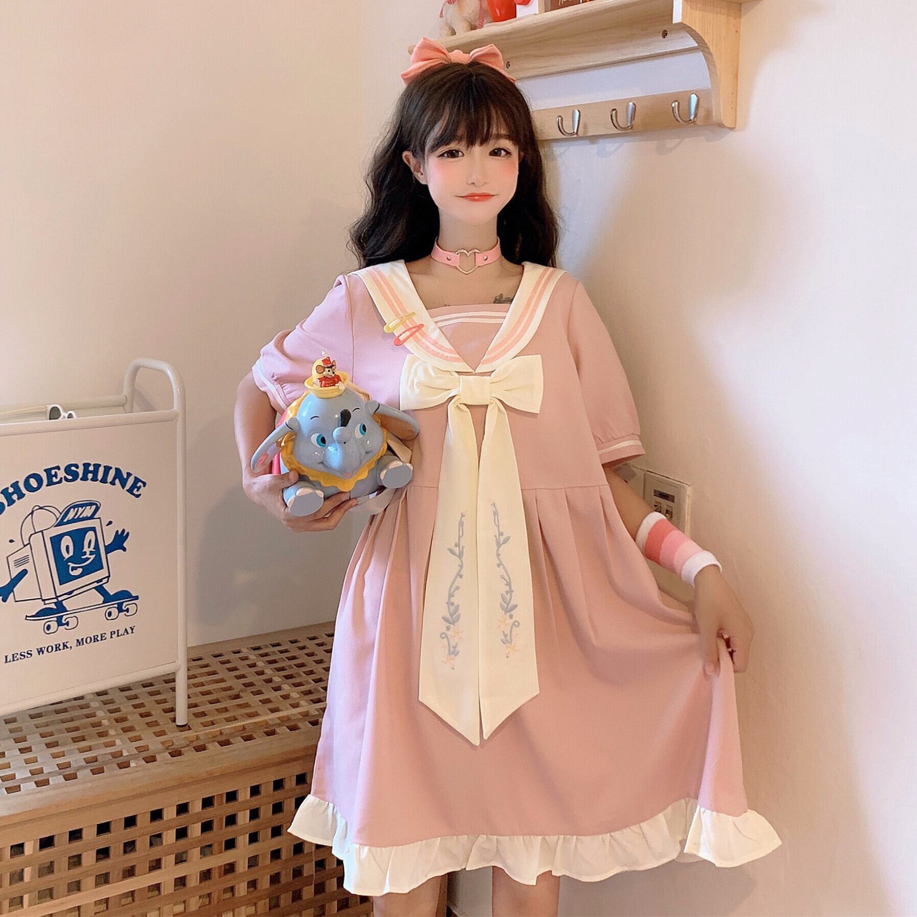 ✞ ネイビー半袖スリーブ刺繍♥カワイイ♥ ショート リボン スウィート ステッチ ✞ゴスロリ SM ミリ 甘ロリ クラロリ 和ロリ エレガント 黒ロリ 姫ロリ 華ロリ BB-BB1564046