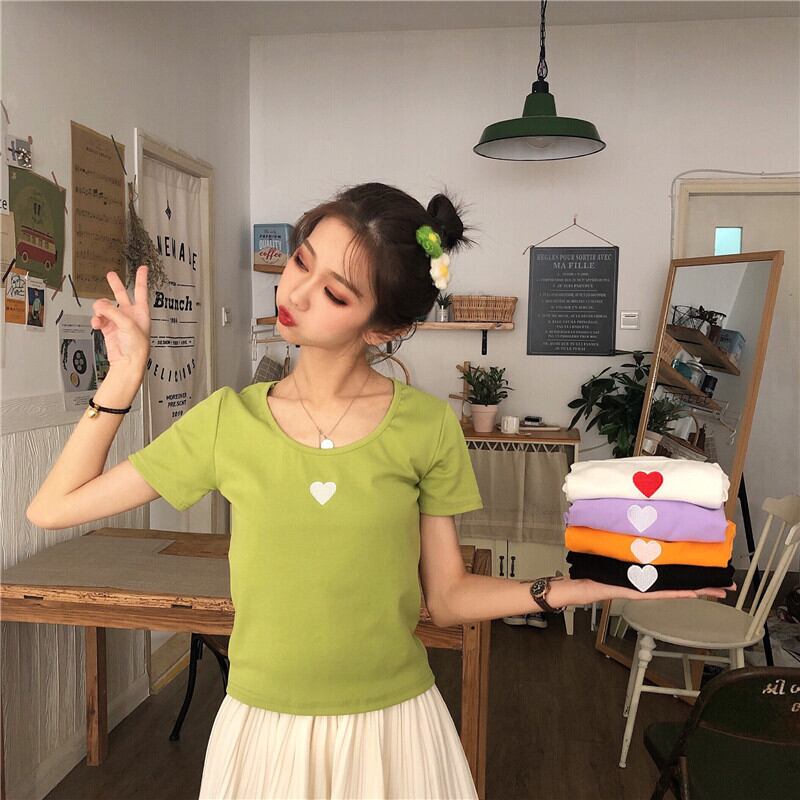 ✞ ラウンドネック刺繍カラーショートスリムTシャツ スウィート ✞ゴスロリ SM ミリ 甘ロリ クラロリ 和ロリ エレガント 黒ロリ 姫ロリ 華ロリ BB-BB6823587