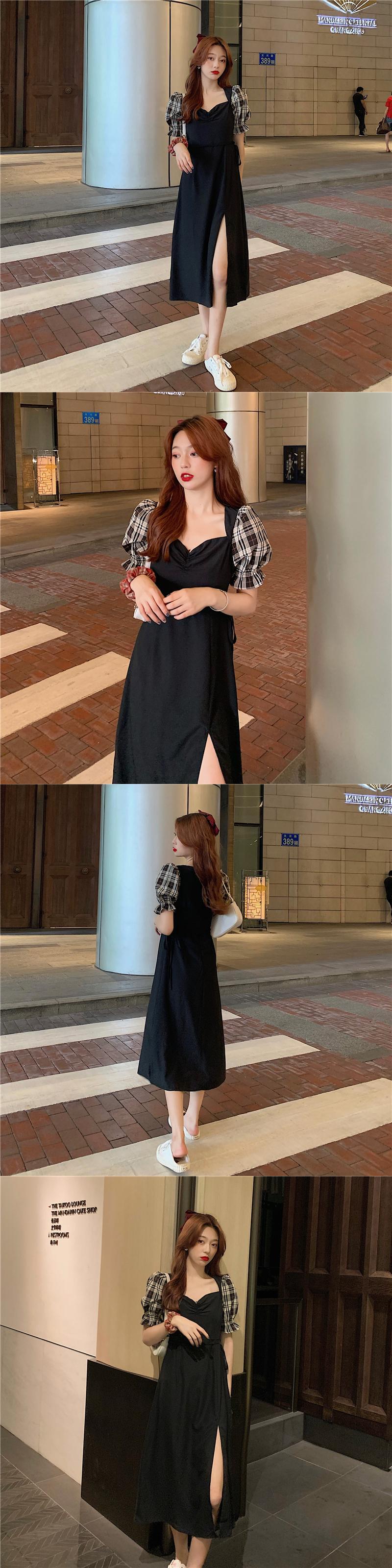 ✞ サマー♥カワイイ♥チェック柄レーススリーブ大人女子☆ 夏物 ステッチ ✞ゴスロリ SM ミリ 甘ロリ クラロリ 和ロリ エレガント 黒ロリ 姫ロリ 華ロリ BB-BB5401844