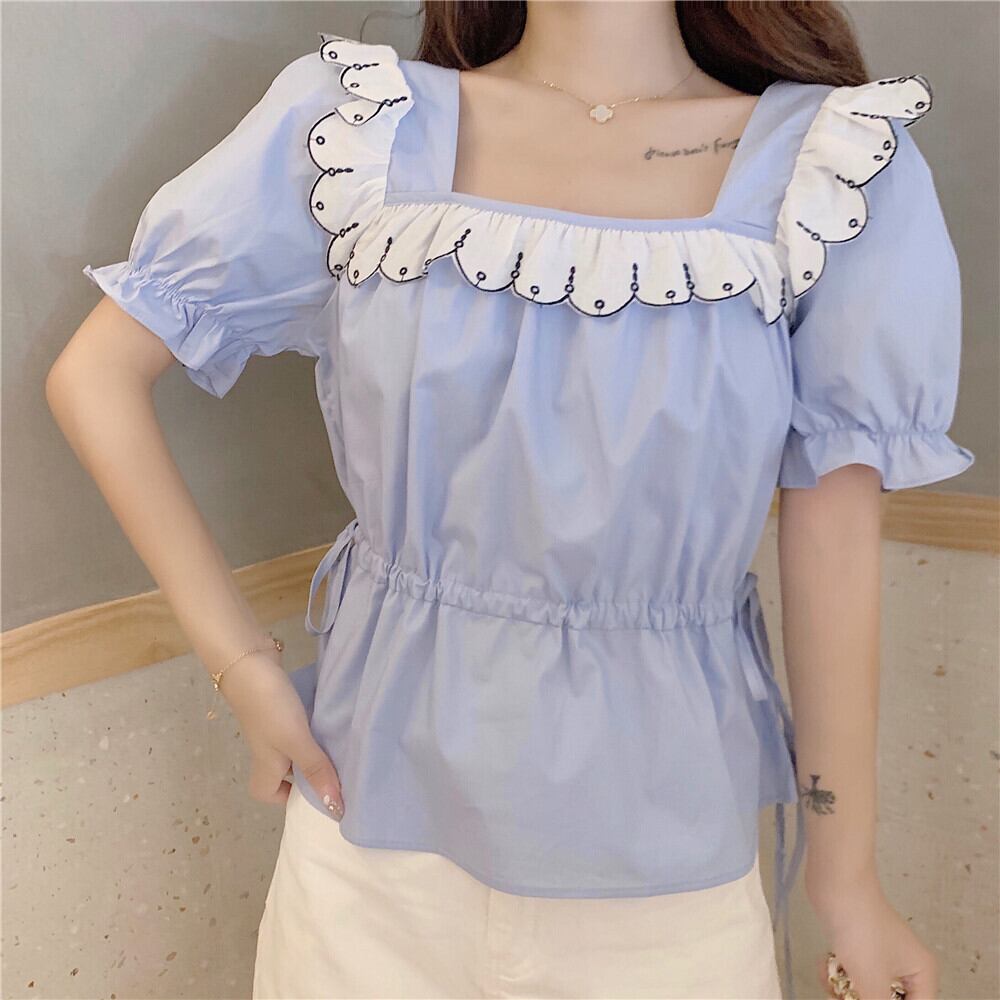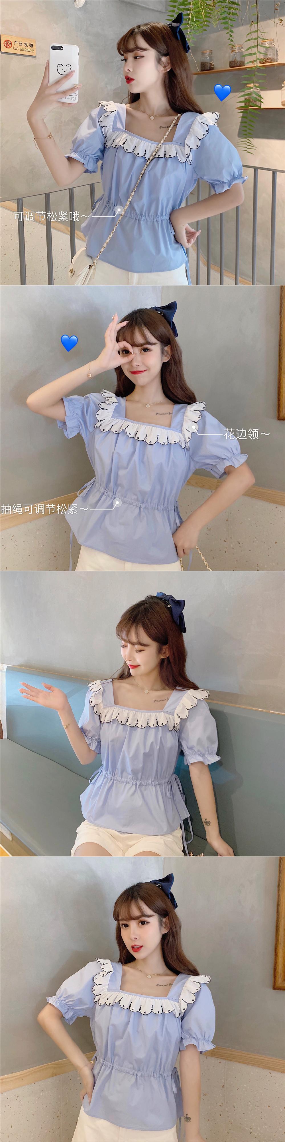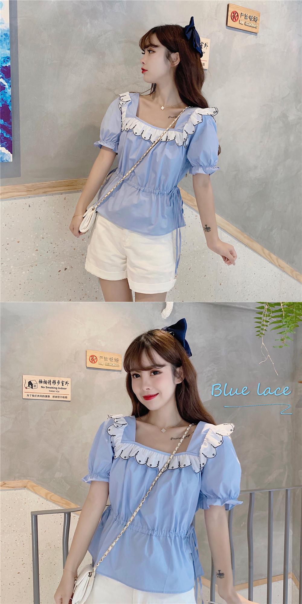 ✞ シャツブラウストップス スリーブレースギャザーウエストすっきり☆着痩せ スウィート スクウェア ✞ゴスロリ SM ミリ 甘ロリ クラロリ 和ロリ エレガント 黒ロリ 姫ロリ 華ロリ BB-BB7278991