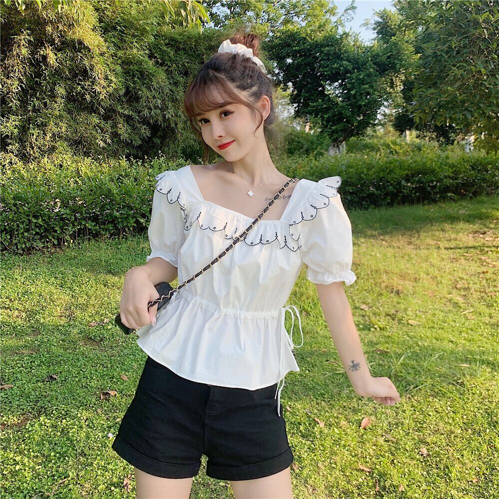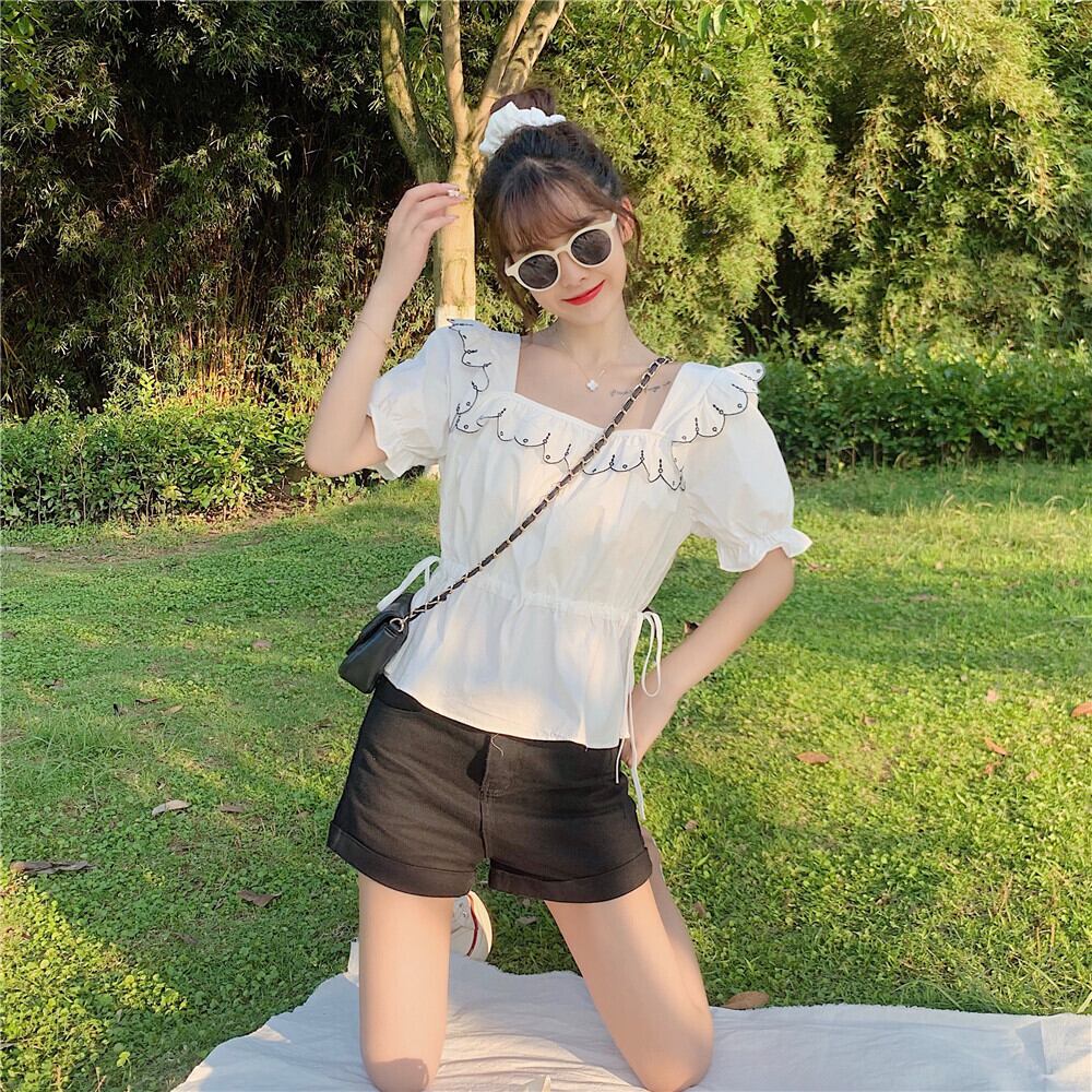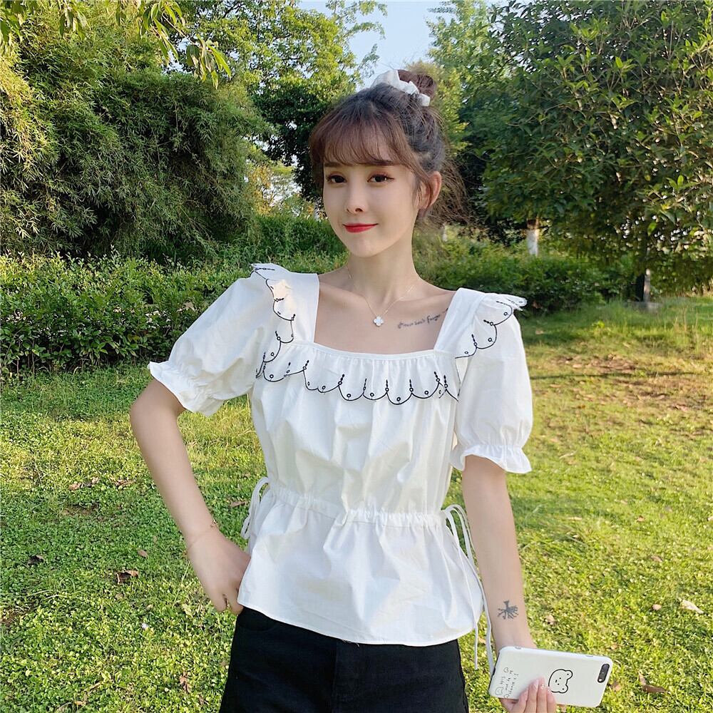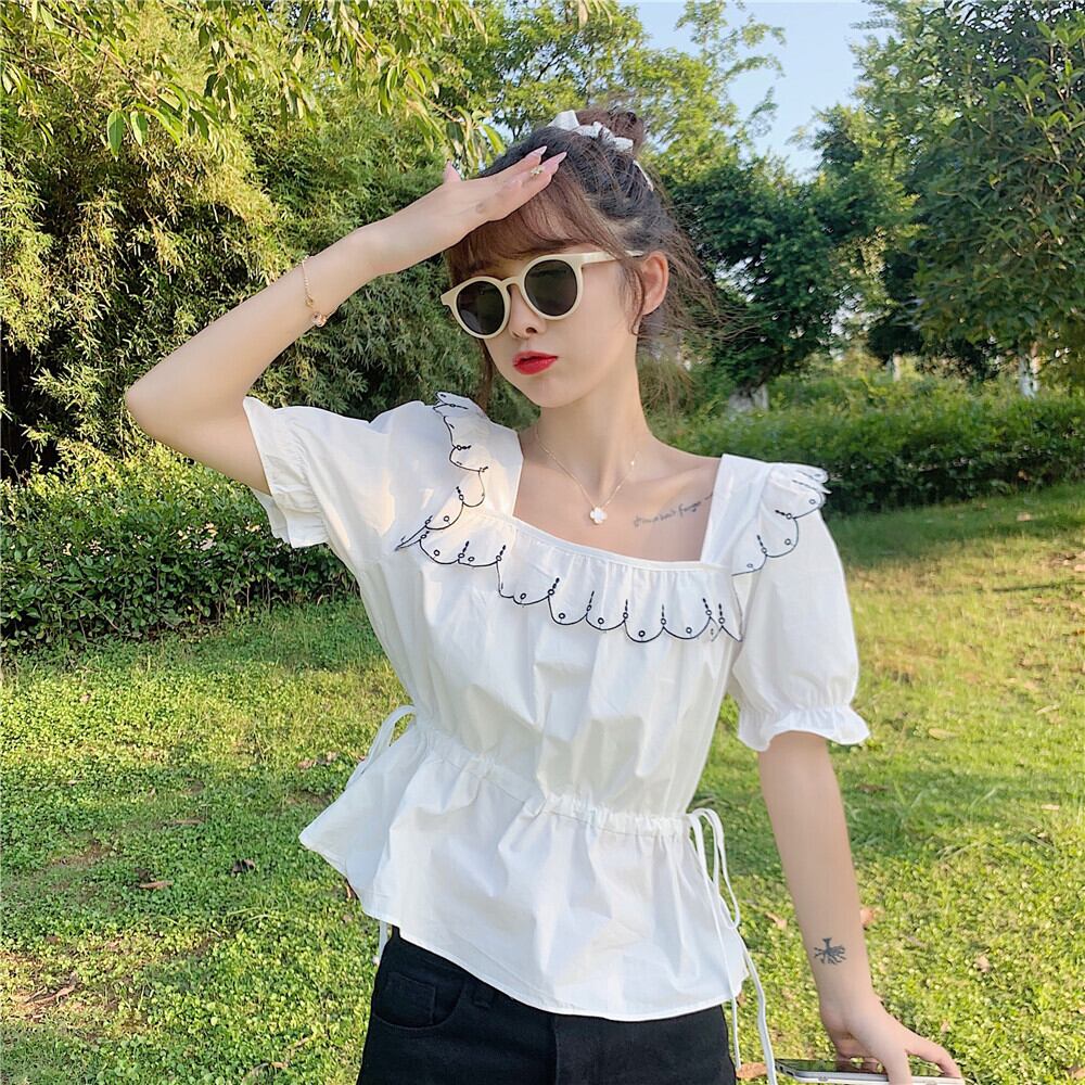 ✞ シャツブラウストップス スリーブレースギャザーウエストすっきり☆着痩せ スウィート スクウェア ✞ゴスロリ SM ミリ 甘ロリ クラロリ 和ロリ エレガント 黒ロリ 姫ロリ 華ロリ BB-BB7278991