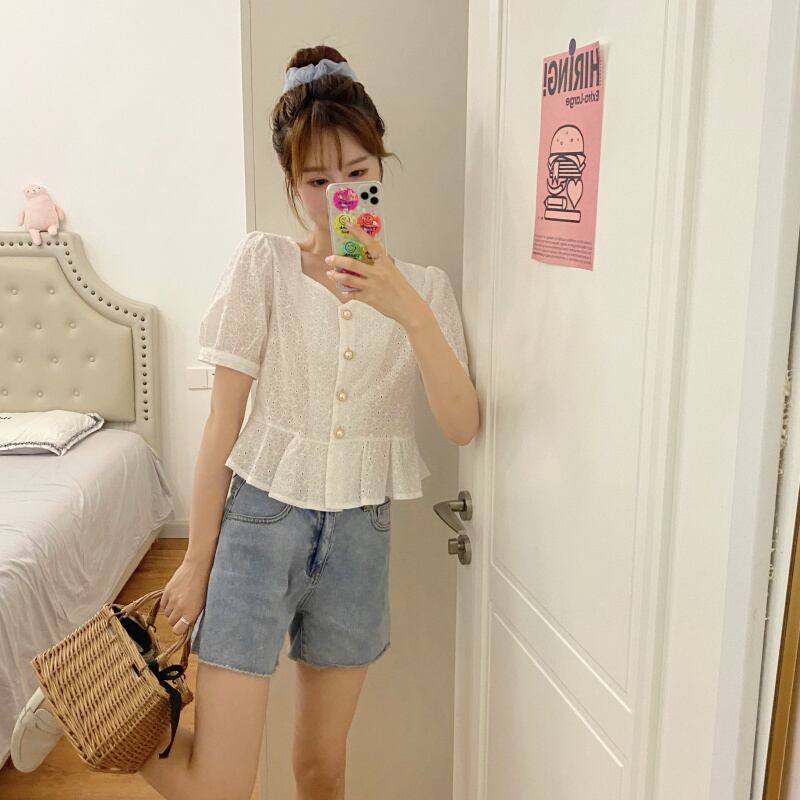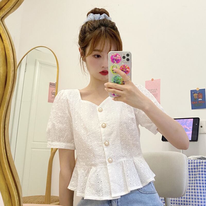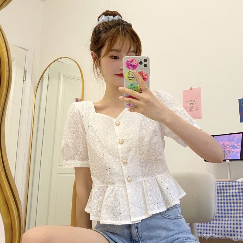✞ ショート刺繍シャツブラウス スクウェア ✞ゴスロリ SM ミリ 甘ロリ クラロリ 和ロリ エレガント 黒ロリ 姫ロリ 華ロリ BB-BB5996679