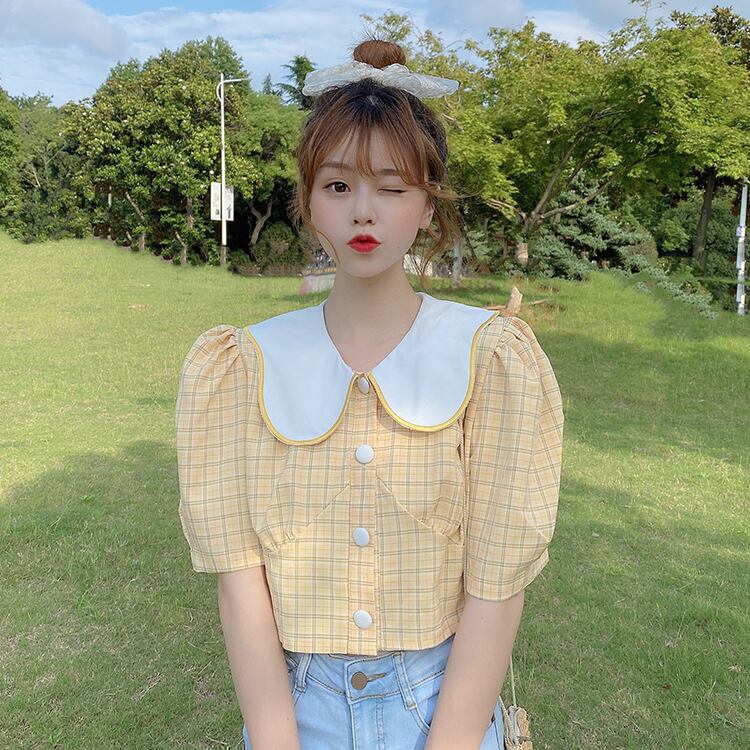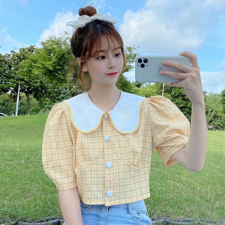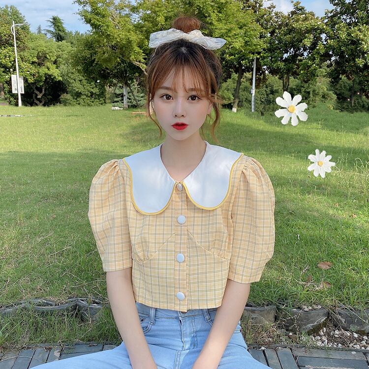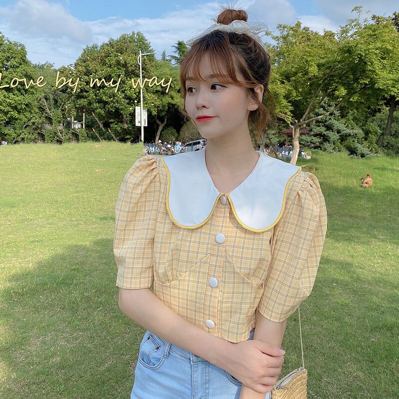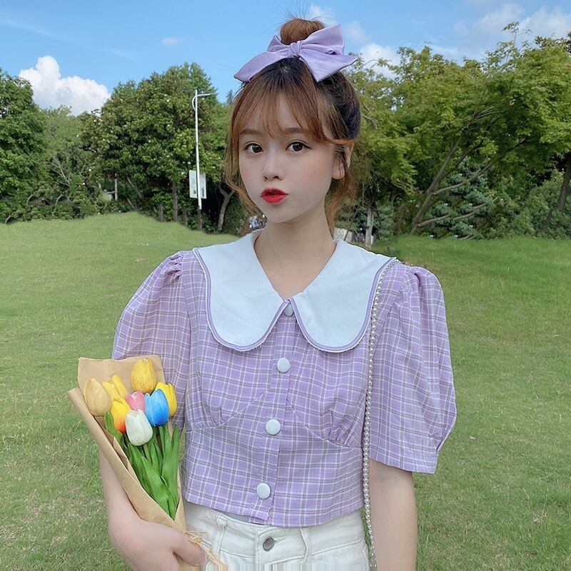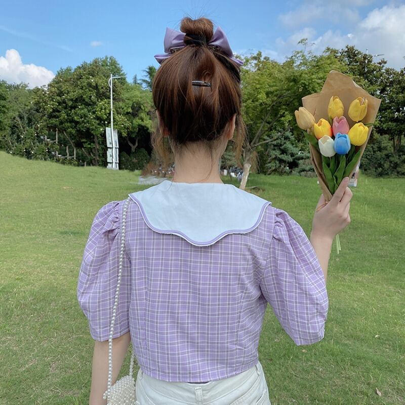 ✞ カラースタンダードチェック柄スリムショートスリーブシャツブラウストップス レトロ スウィート ✞ゴスロリ SM ミリ 甘ロリ クラロリ 和ロリ エレガント 黒ロリ 姫ロリ 華ロリ BB-BB1532357
