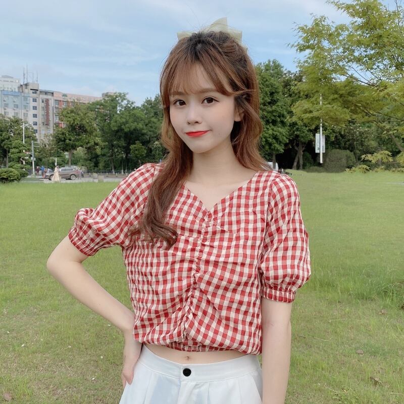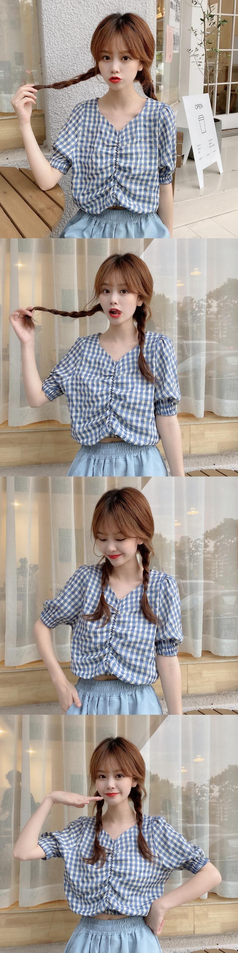 ✞ Vネックシャツブラウスチェック柄スリーブショート ✞ゴスロリ SM ミリ 甘ロリ クラロリ 和ロリ エレガント 黒ロリ 姫ロリ 華ロリ BB-BB4416410