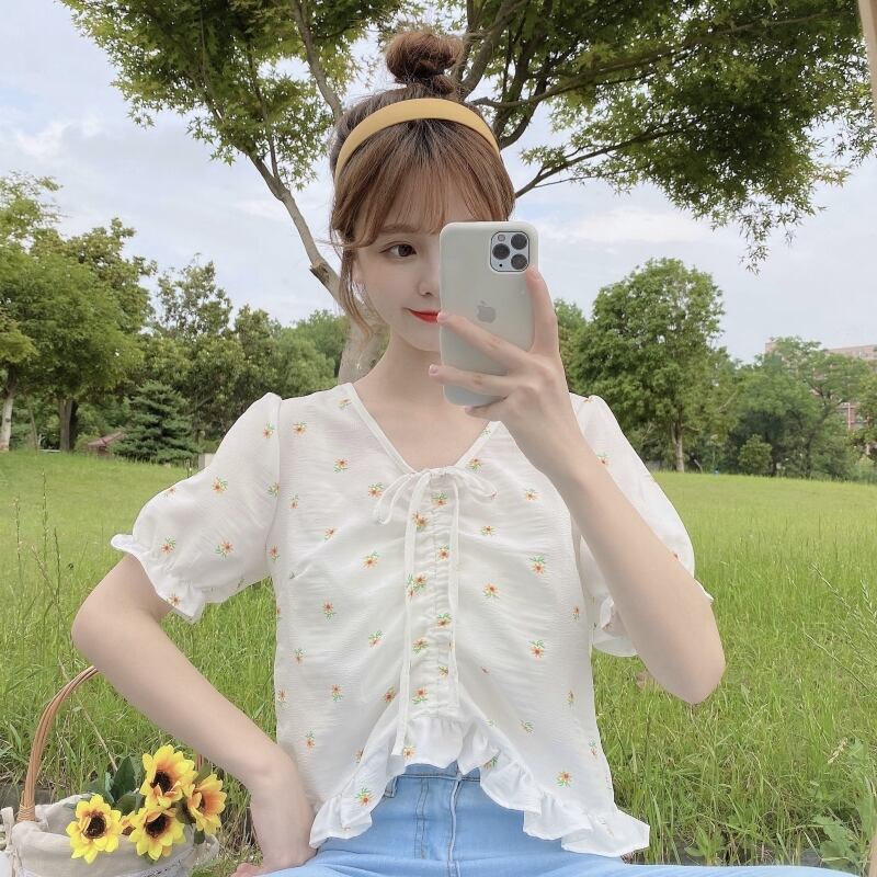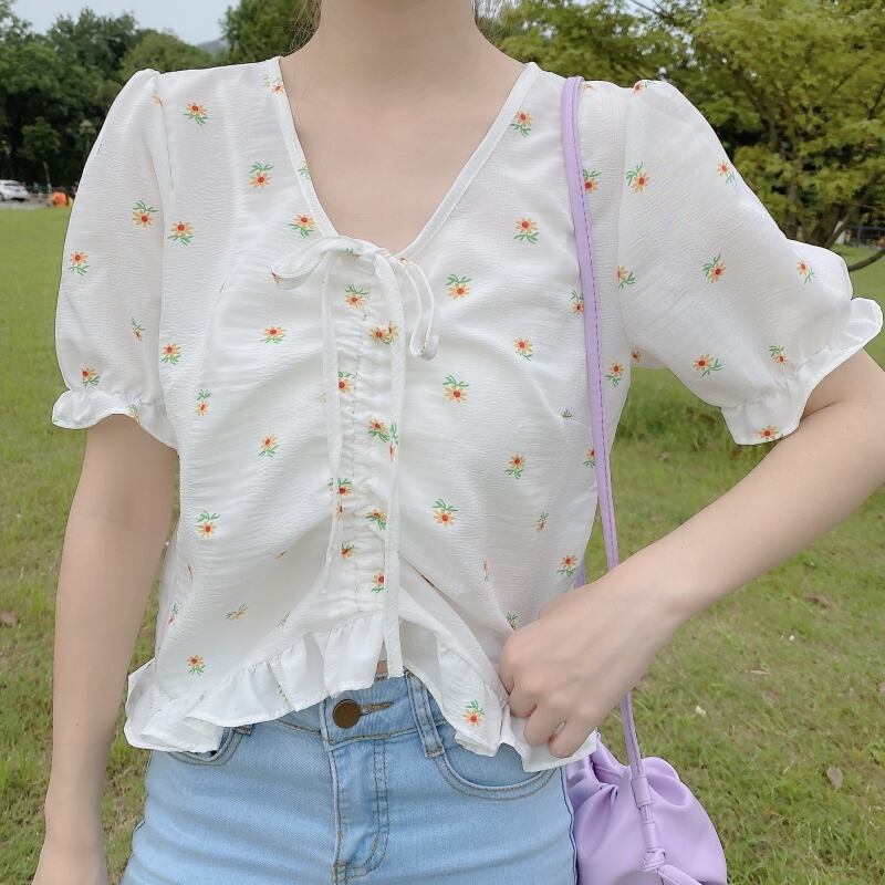 ✞ スタンダードVネックギャザープリントショートスリーブシャツブラウストップス レトロ スウィート ✞ゴスロリ SM ミリ 甘ロリ クラロリ 和ロリ エレガント 黒ロリ 姫ロリ 華ロリ BB-BB8529820