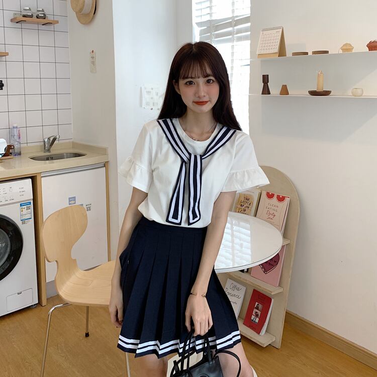 ✞ きれいめ制服☆セーラーカラーシャツブラウス or ネイビープリーツスカート ガーリー ステッチ ✞ゴスロリ SM ミリ 甘ロリ クラロリ 和ロリ エレガント 黒ロリ 姫ロリ 華ロリ BB-BB8818072