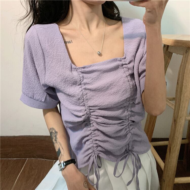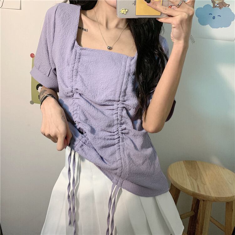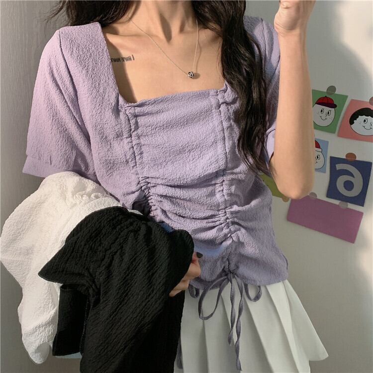 ✞ 半袖スリーブギャザーレースシャツブラウス ショート スクウェア ✞ゴスロリ SM ミリ 甘ロリ クラロリ 和ロリ エレガント 黒ロリ 姫ロリ 華ロリ BB-BB3520674