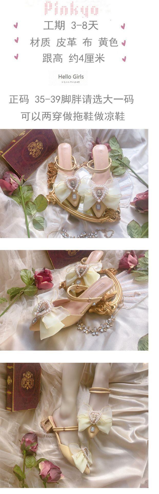 ✞✝✞ イエローミュールサンダルButterflyデザイン スタンダードきれいめ☆ヴィンテージ 靴 シューズ レトロ レース ビンテージ ✞✝✞ゴスロリ SM ミリ 甘ロリ クラロリ 和ロリ エレガント 黒ロリ 姫ロリ 華ロリ DD-DD6389100