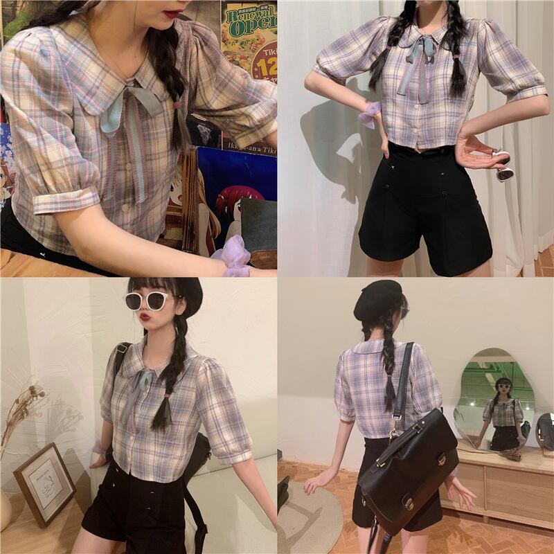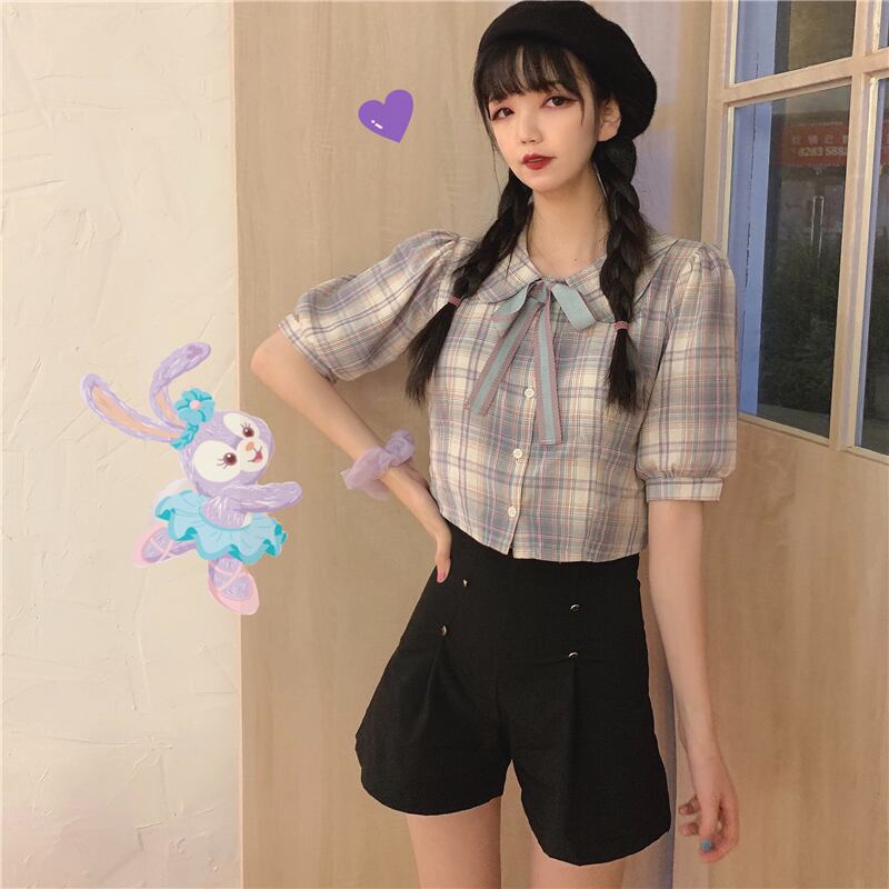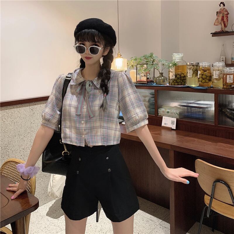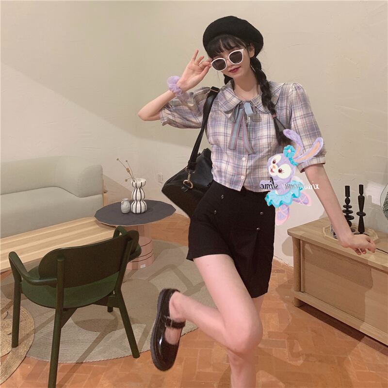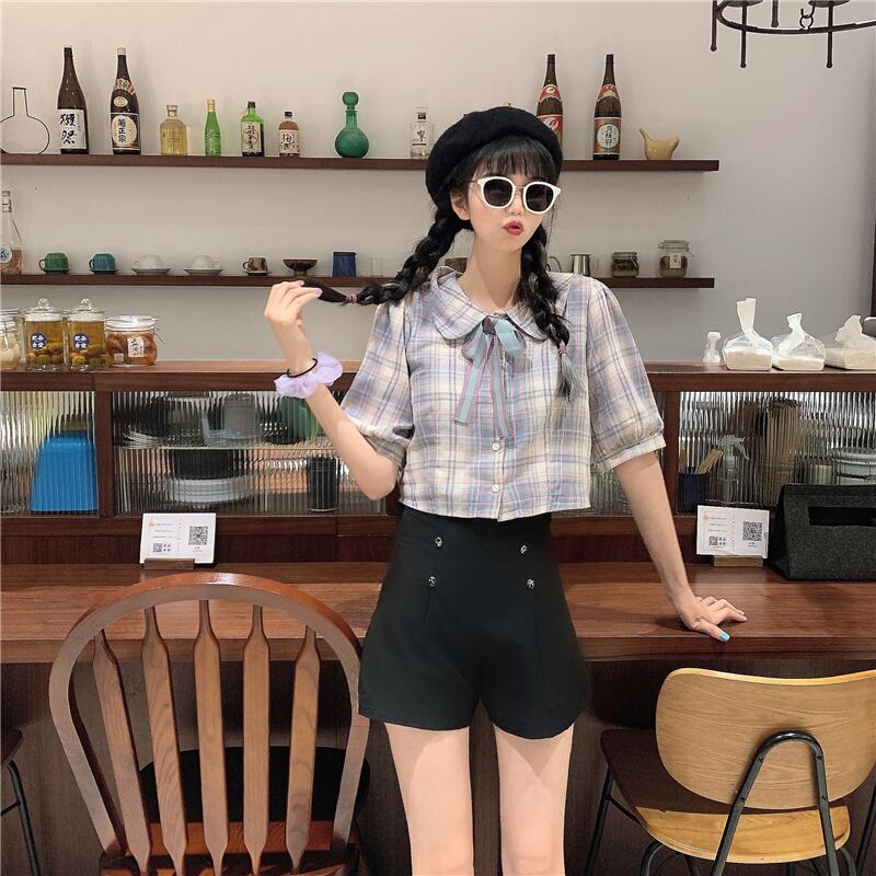 ✞ チェック柄ショートシャツブラウスダブルブレストショートパンツ スウィート ガーリー ✞ゴスロリ SM ミリ 甘ロリ クラロリ 和ロリ エレガント 黒ロリ 姫ロリ 華ロリ BB-BB3679113
