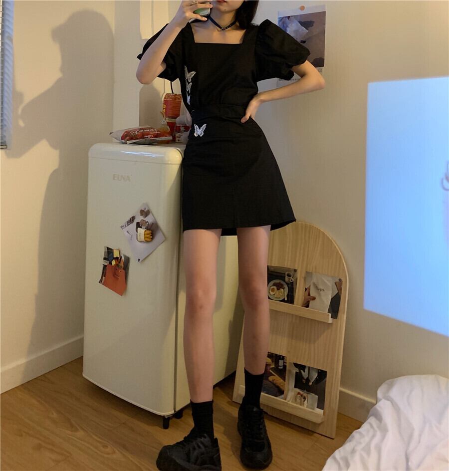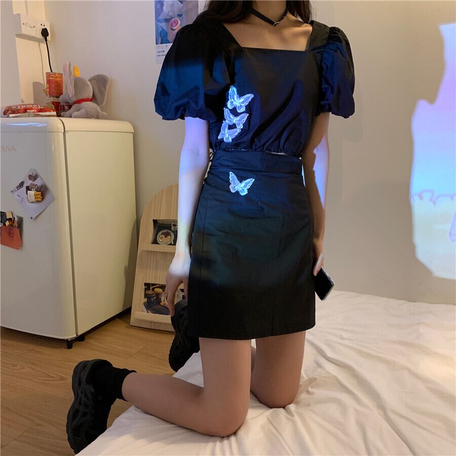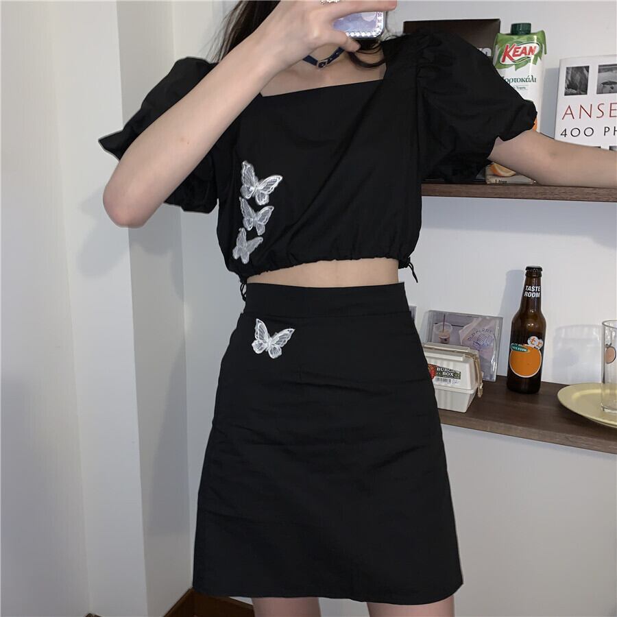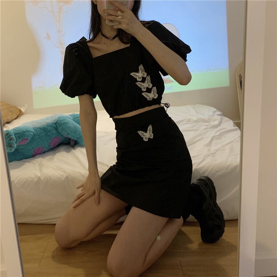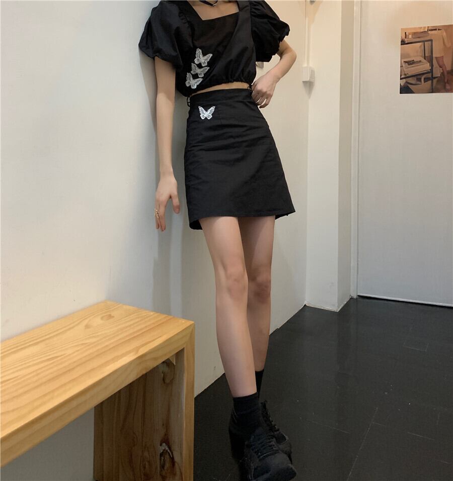 ✞ ダークブラックButterflyデザイン スリーブショートトップス 今年流行☆スカート スクウェア ✞ゴスロリ SM ミリ 甘ロリ クラロリ 和ロリ エレガント 黒ロリ 姫ロリ 華ロリ BB-BB3696384