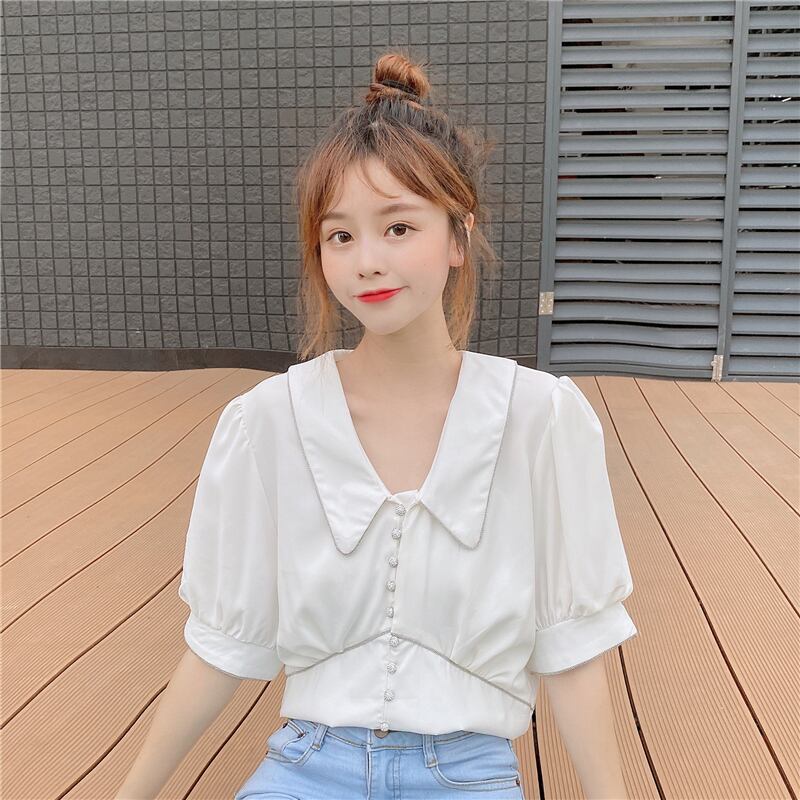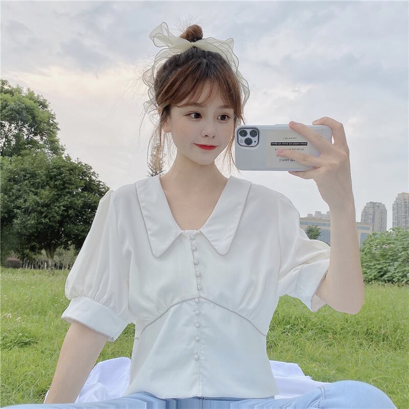 ✞ シャツブラウスVネックウエストすっきり☆着痩せスリーブショートシフォン ランタンスリーブ スウィート ✞ゴスロリ SM ミリ 甘ロリ クラロリ 和ロリ エレガント 黒ロリ 姫ロリ 華ロリ BB-BB9794450