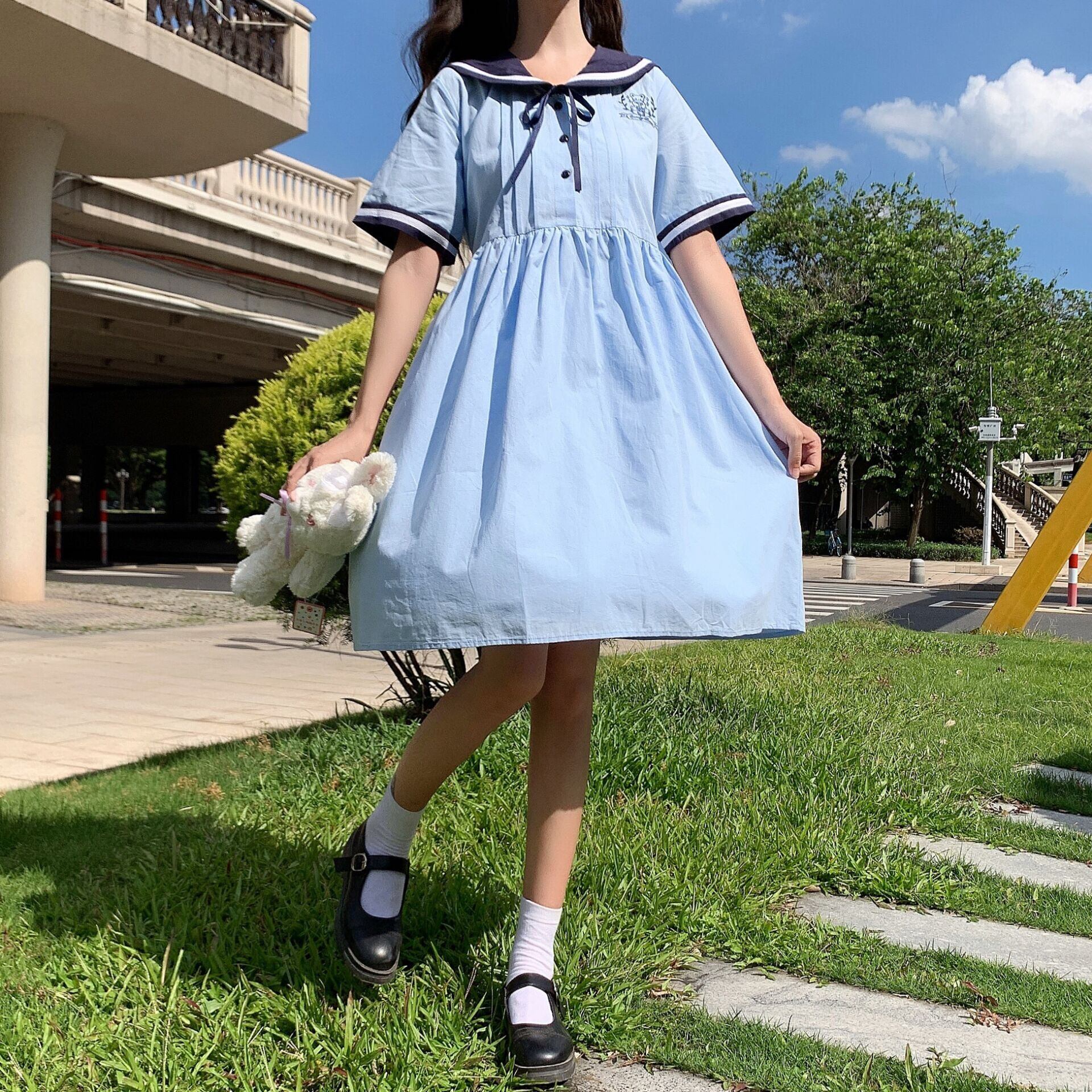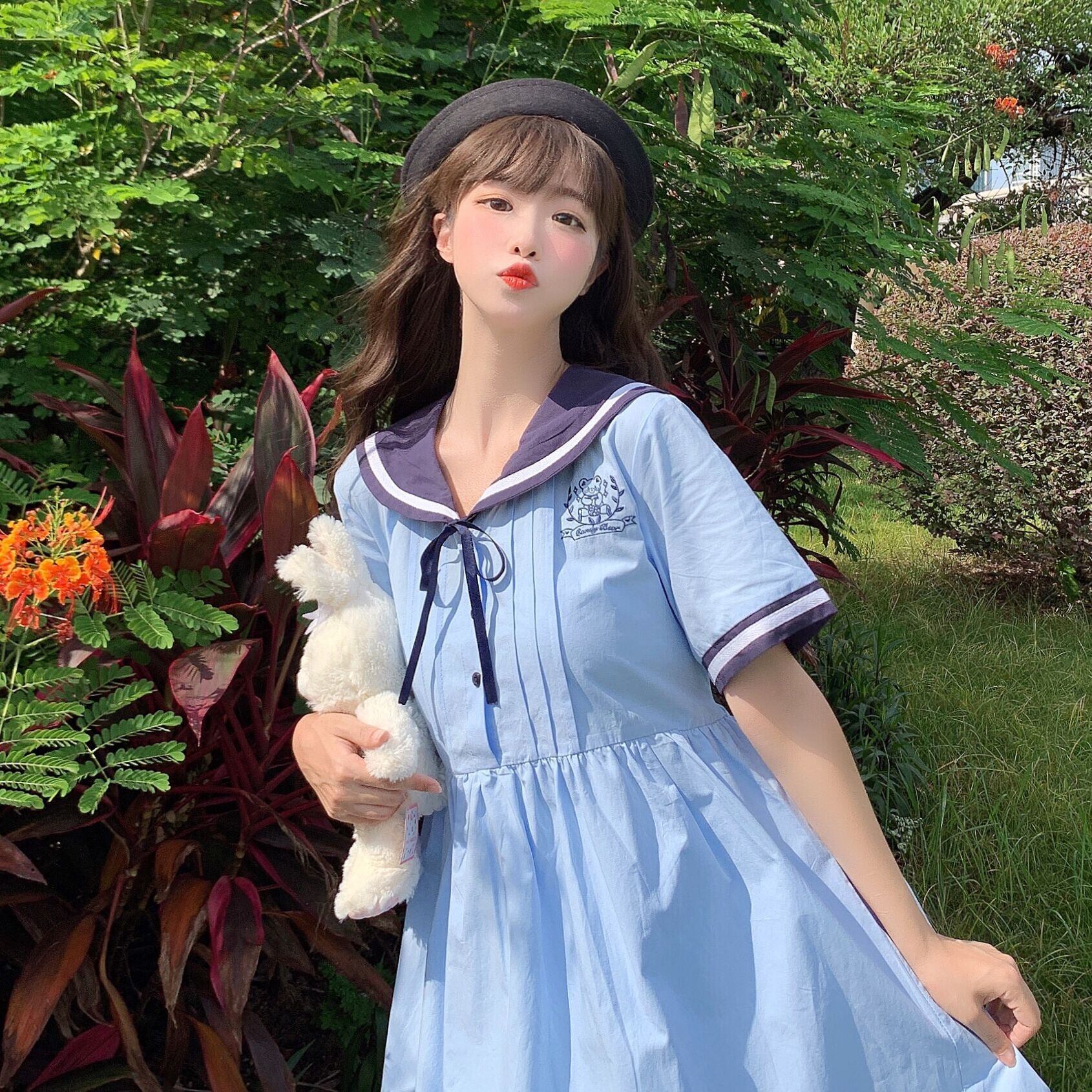 ✞ カラーレースネイビー刺繍半袖スリーブ♥カワイイ♥ ショート ✞ゴスロリ SM ミリ 甘ロリ クラロリ 和ロリ エレガント 黒ロリ 姫ロリ 華ロリ BB-BB7962195
