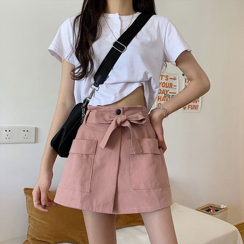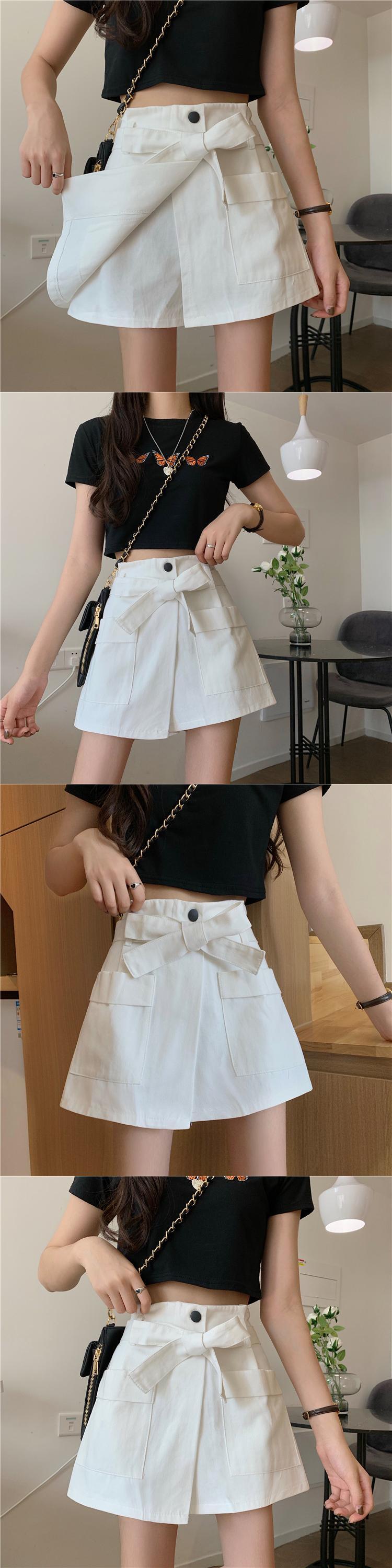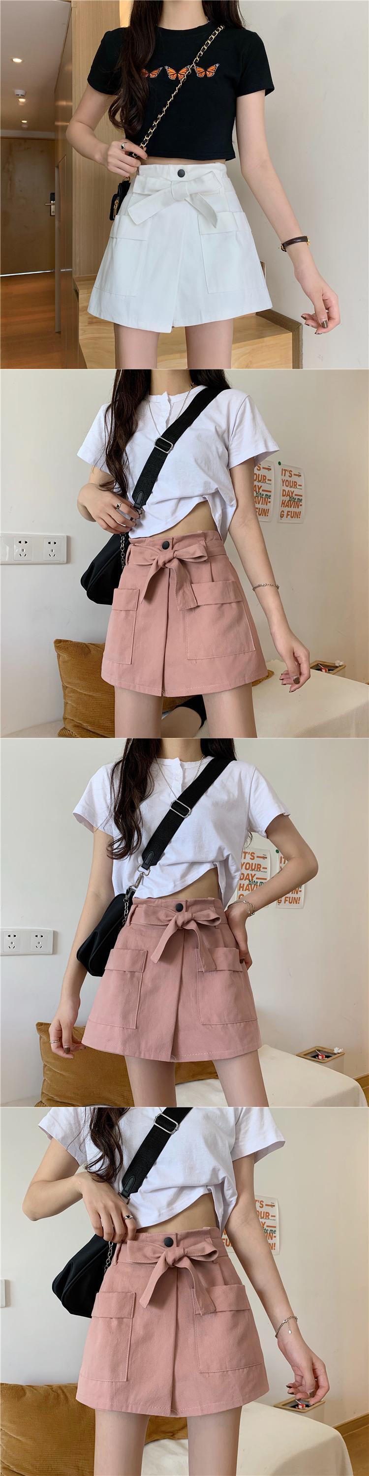 ✞ ワイドレッグショートパンツソリッド カラーポケットスカート パンツ リボン ソリッドカラー ✞ゴスロリ SM ミリ 甘ロリ クラロリ 和ロリ エレガント 黒ロリ 姫ロリ 華ロリ BB-BB2522556