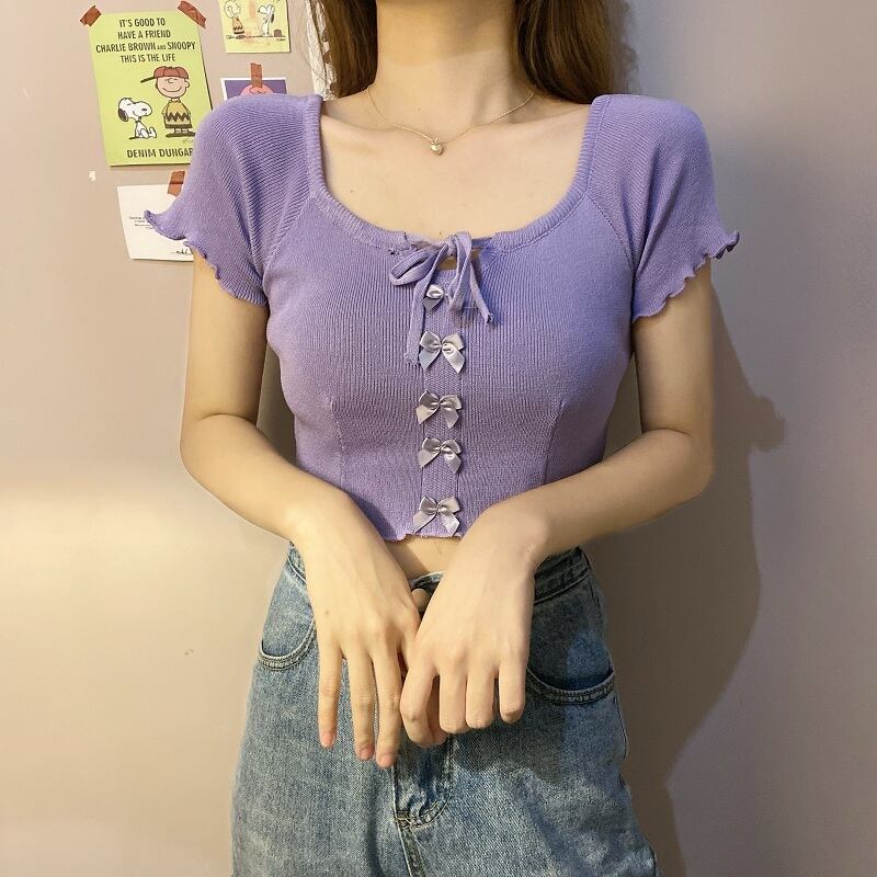 ✞ ニットセーター ラウンドネックリボンスリムショートトップス ✞ゴスロリ SM ミリ 甘ロリ クラロリ 和ロリ エレガント 黒ロリ 姫ロリ 華ロリ BB-BB1604422