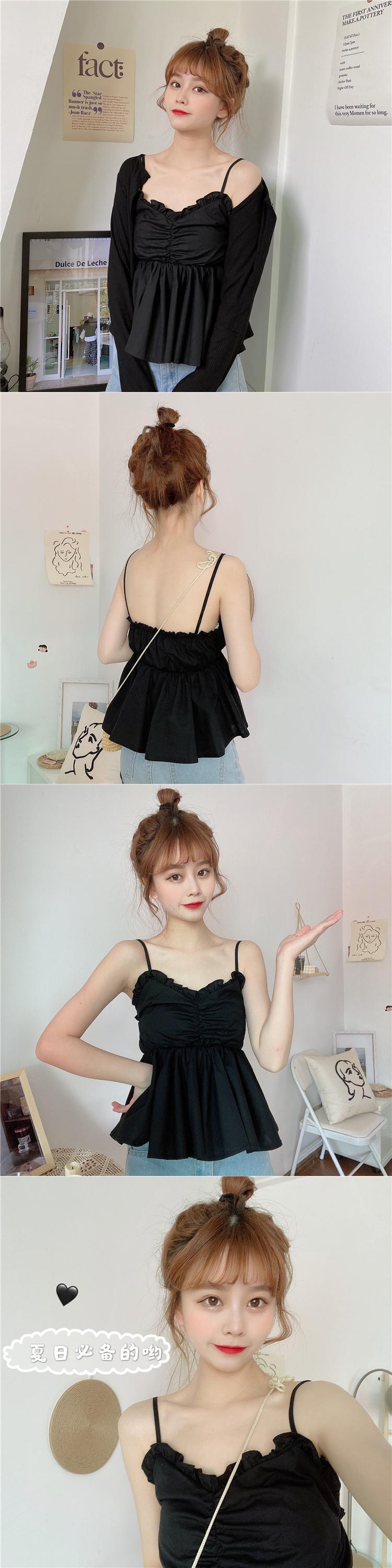 ✞ Vネックウエストフリルキャミソール シャツブラウス スウィート ✞ゴスロリ SM ミリ 甘ロリ クラロリ 和ロリ エレガント 黒ロリ 姫ロリ 華ロリ BB-BB3204992