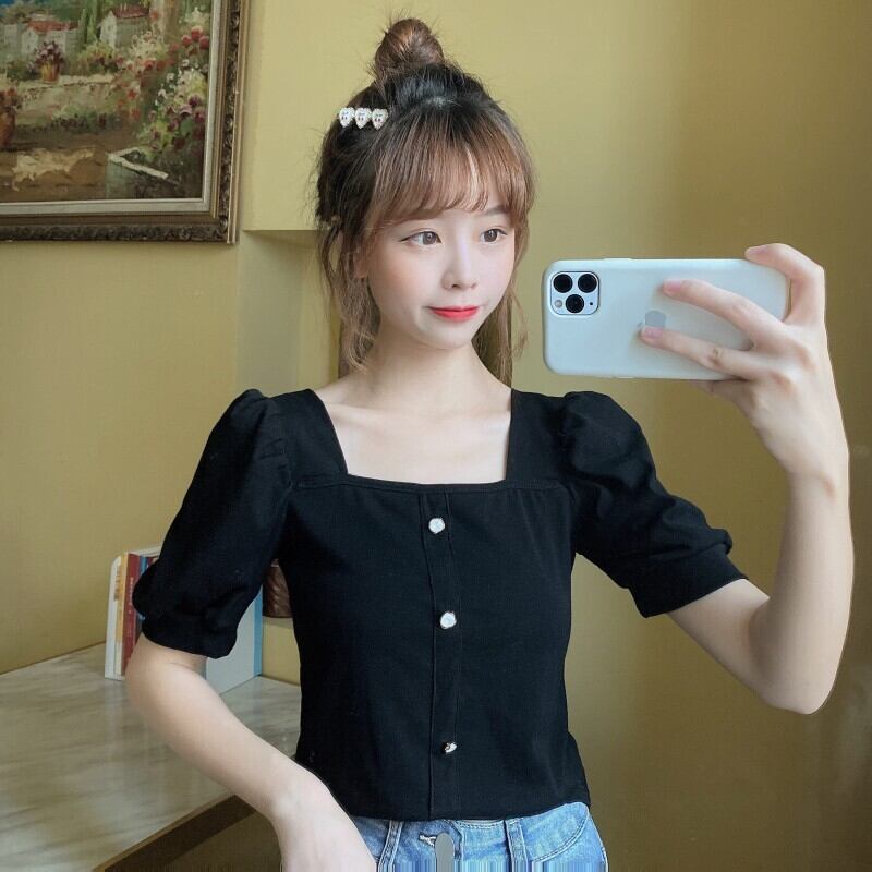 ✞ スリーブシャツブラウスショートスリム スウィート ガーリー スクウェア ✞ゴスロリ SM ミリ 甘ロリ クラロリ 和ロリ エレガント 黒ロリ 姫ロリ 華ロリ BB-BB1777390
