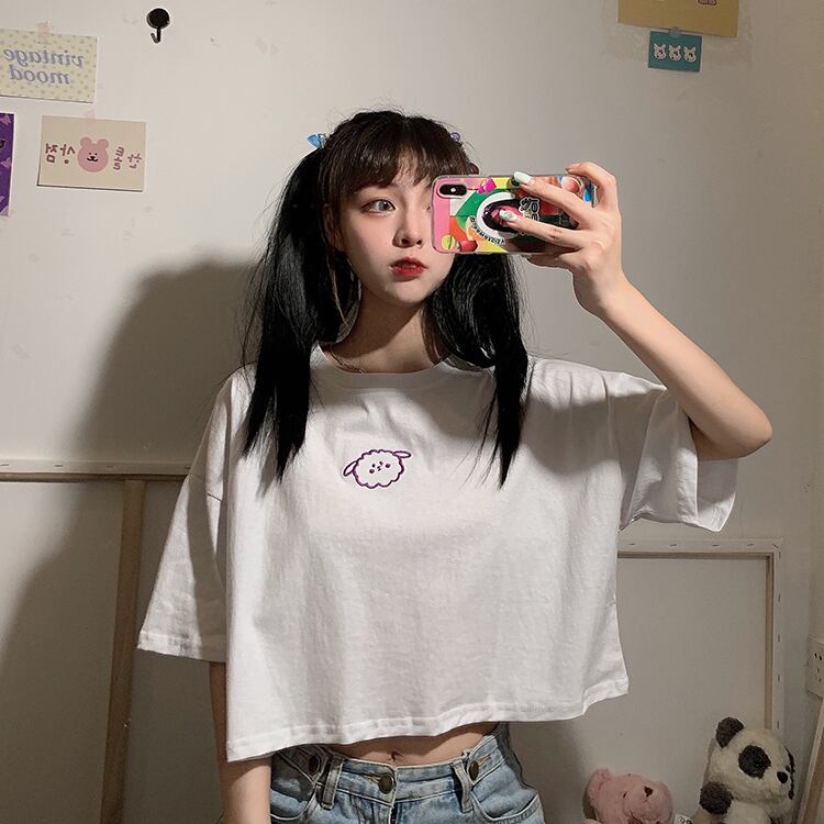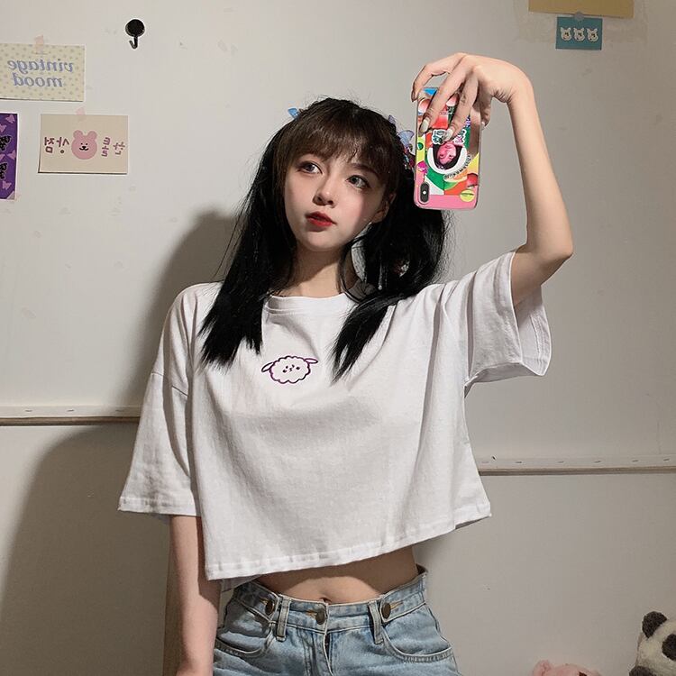✞ スリムラウンドネック刺繍Tシャツ シャツブラウス スウィート ガーリー ✞ゴスロリ SM ミリ 甘ロリ クラロリ 和ロリ エレガント 黒ロリ 姫ロリ 華ロリ BB-BB5084115