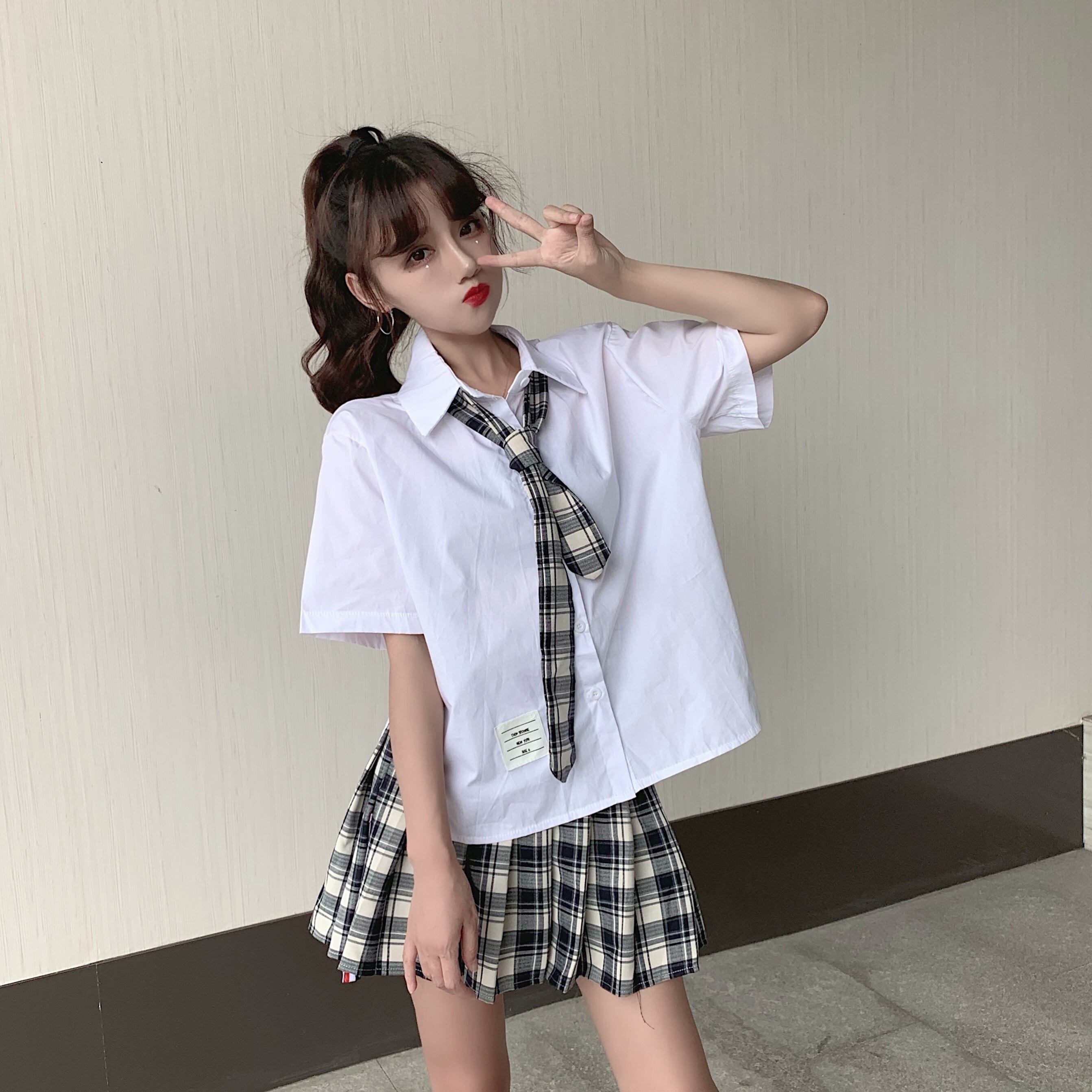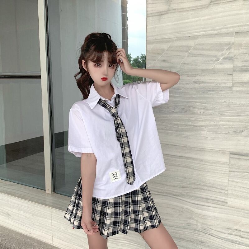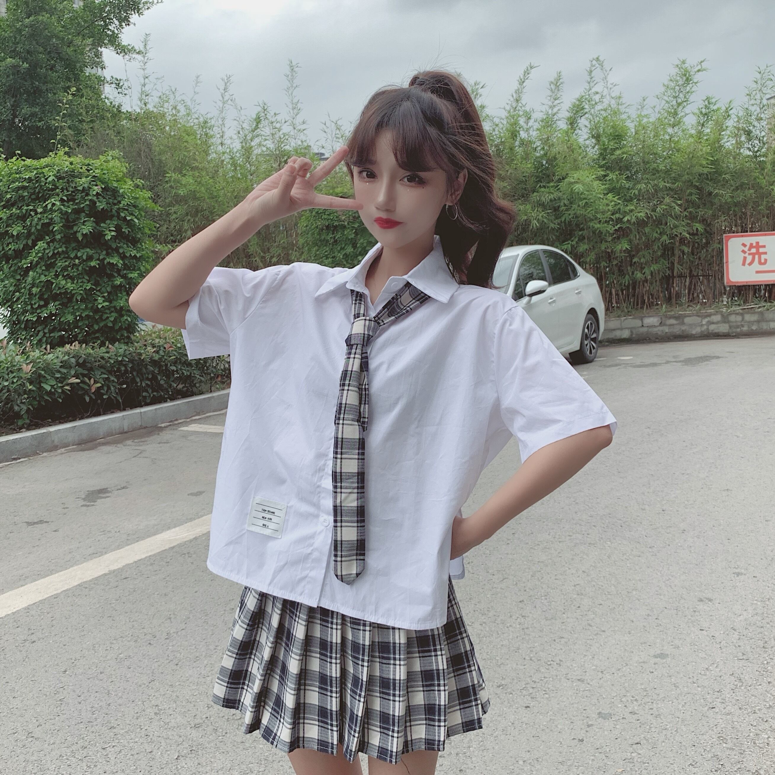 色:白いシャツ+ネクタイ,チェックプリーツスカート