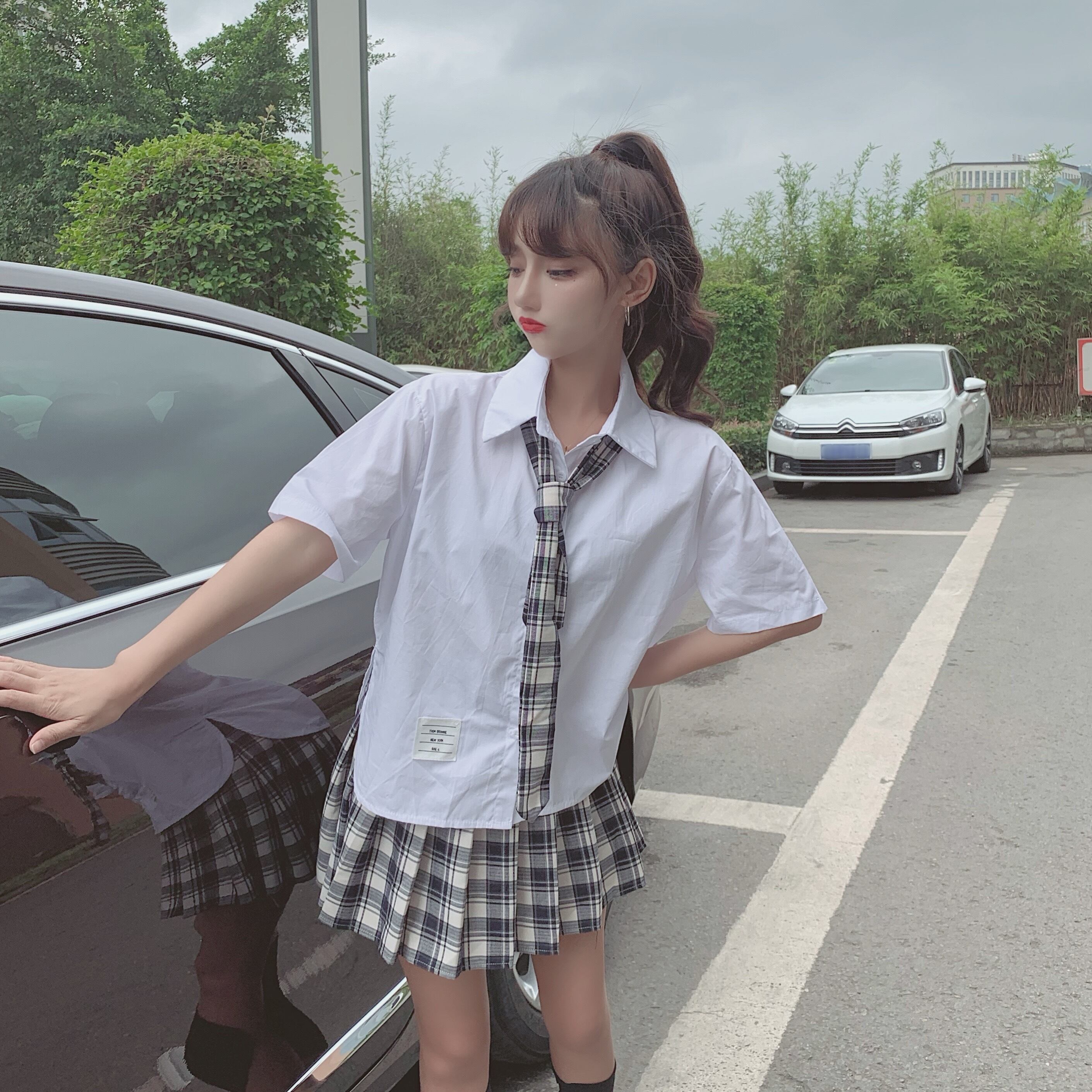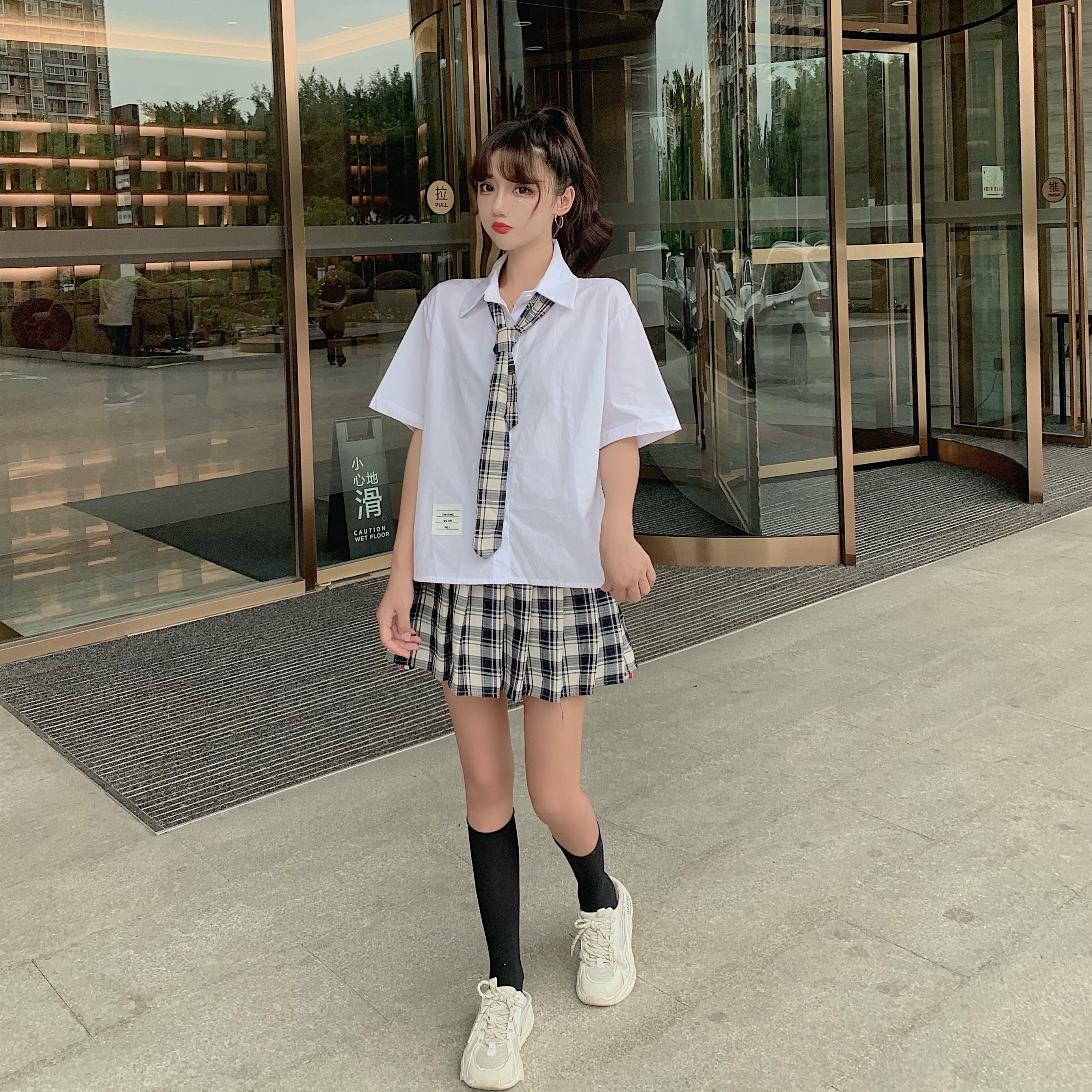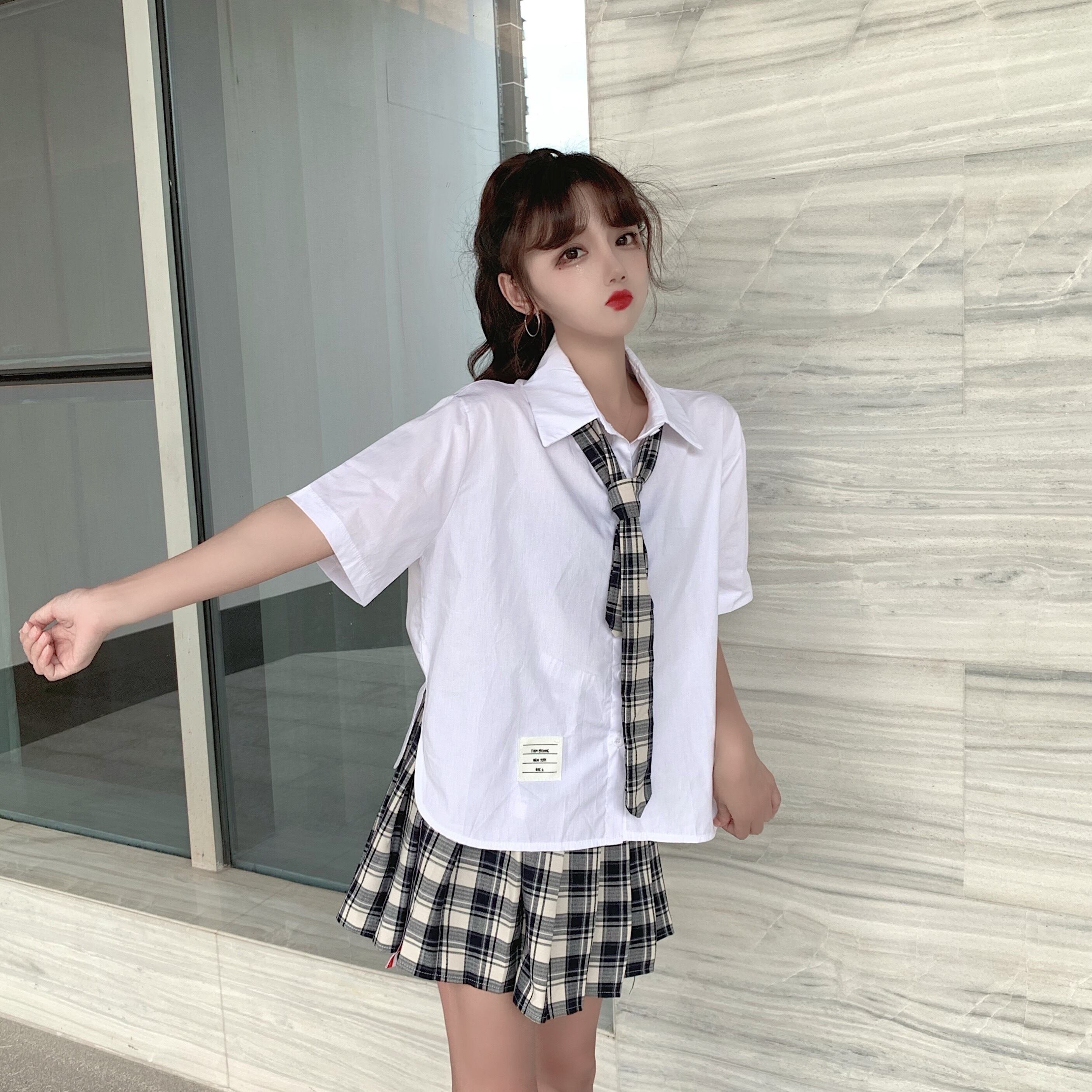 色:白いシャツ+ネクタイ,チェックプリーツスカート