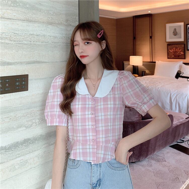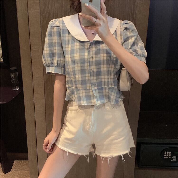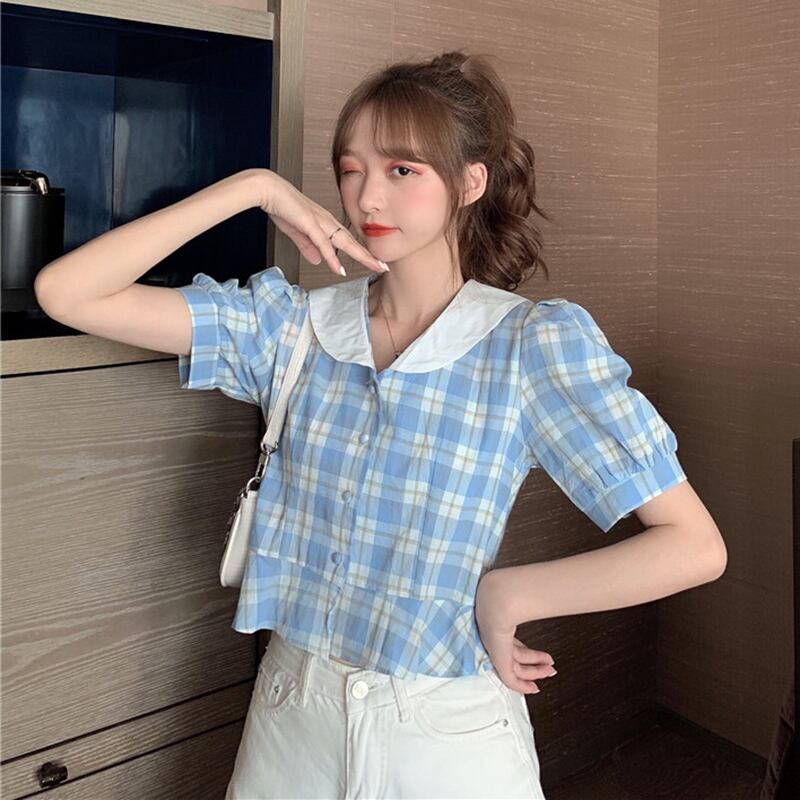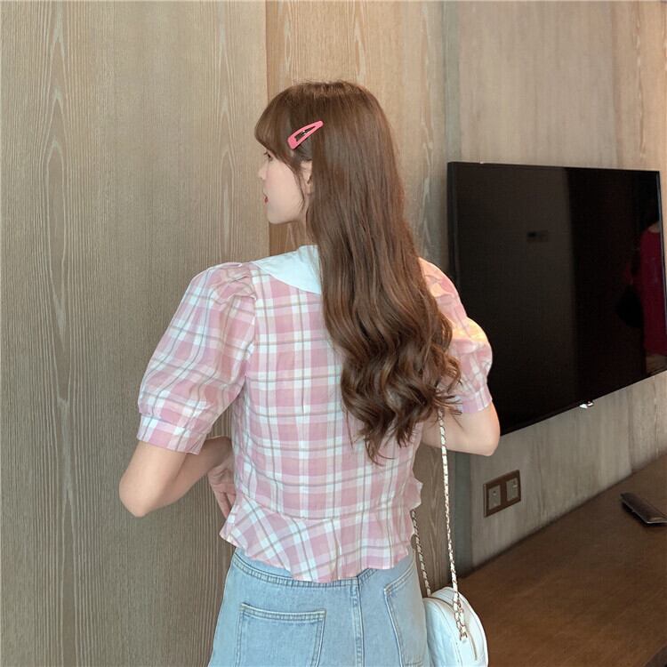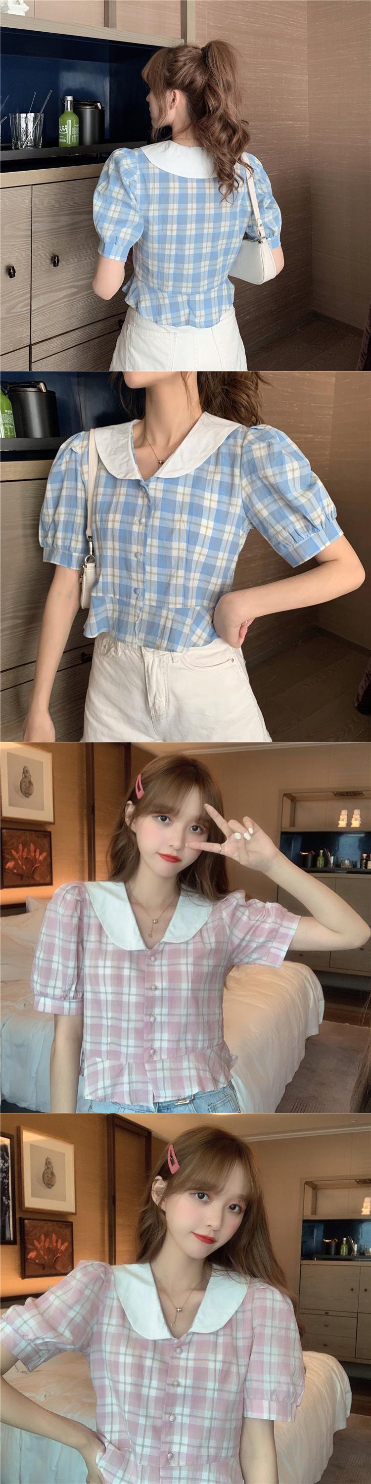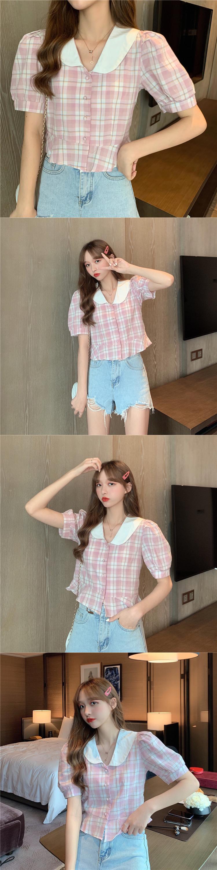✞ カラースリーブショートチェック柄シャツブラウストップス スウィート ✞ゴスロリ SM ミリ 甘ロリ クラロリ 和ロリ エレガント 黒ロリ 姫ロリ 華ロリ BB-BB3768055