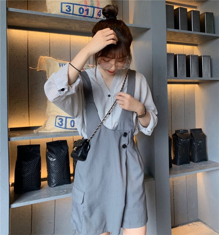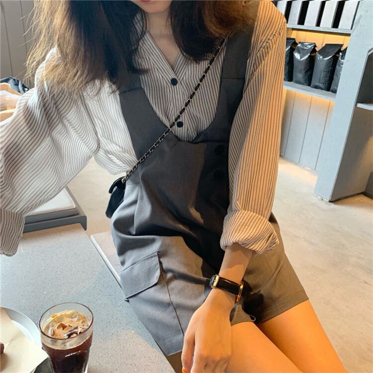 色:ストライプシャツワンピース,グレーのストラップワンピース,ブラックストラップシングルピース