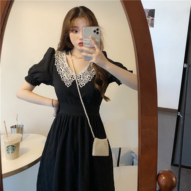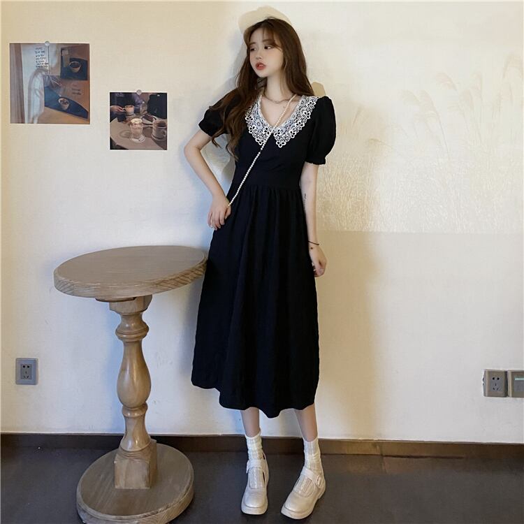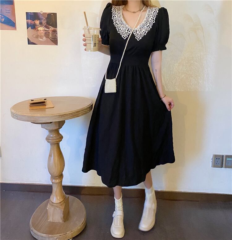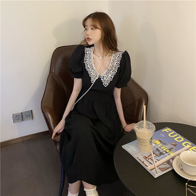 ✞ 黒レースブラックスリーブギャザーワンピースOP 着痩せロング スウィート ガーリー ✞ゴスロリ SM ミリ 甘ロリ クラロリ 和ロリ エレガント 黒ロリ 姫ロリ 華ロリ BB-BB8596230