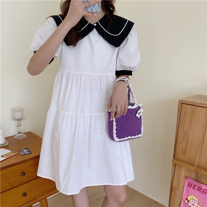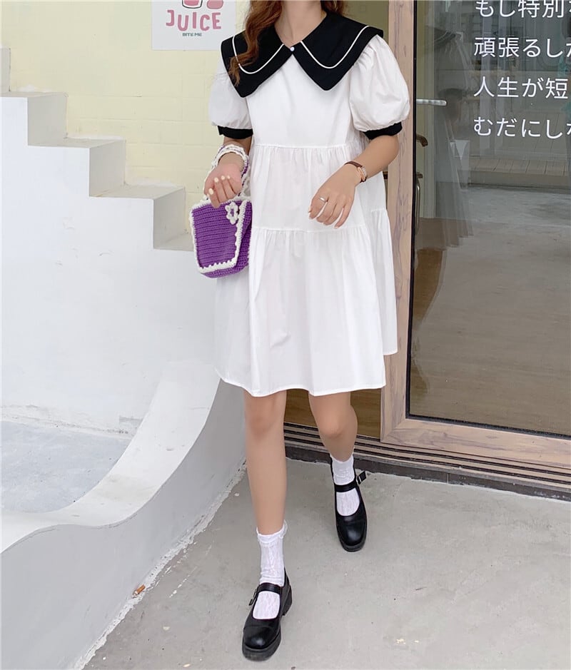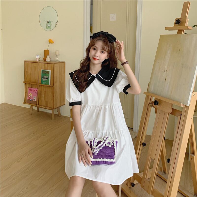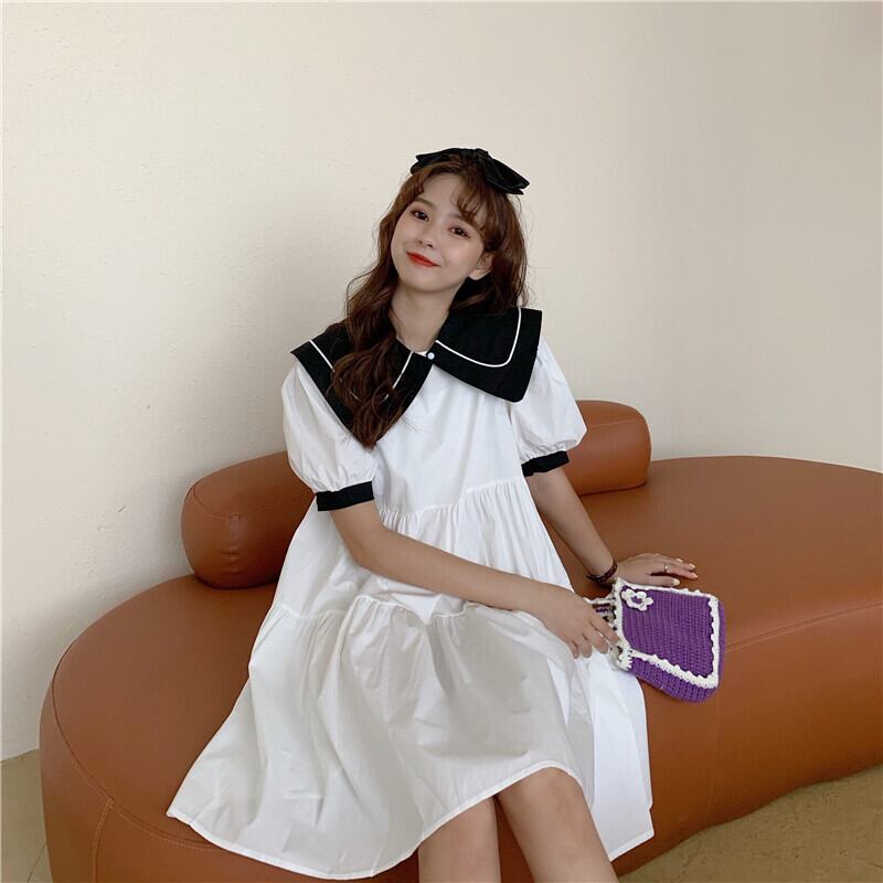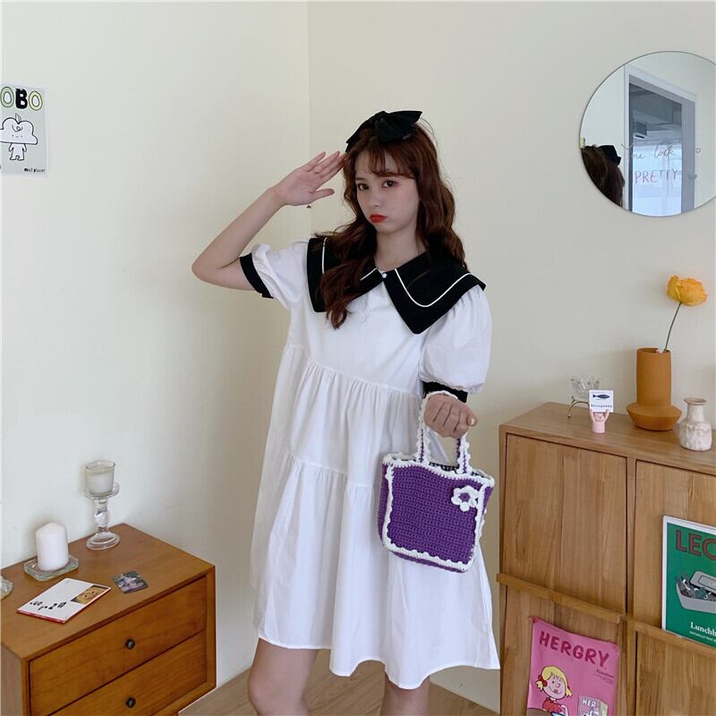 ✞ ネイビー白スカート スリーブドレス ワンピース大人女子☆サマー ホワイト スウィート 夏物 ✞ゴスロリ SM ミリ 甘ロリ クラロリ 和ロリ エレガント 黒ロリ 姫ロリ 華ロリ BB-BB6159366