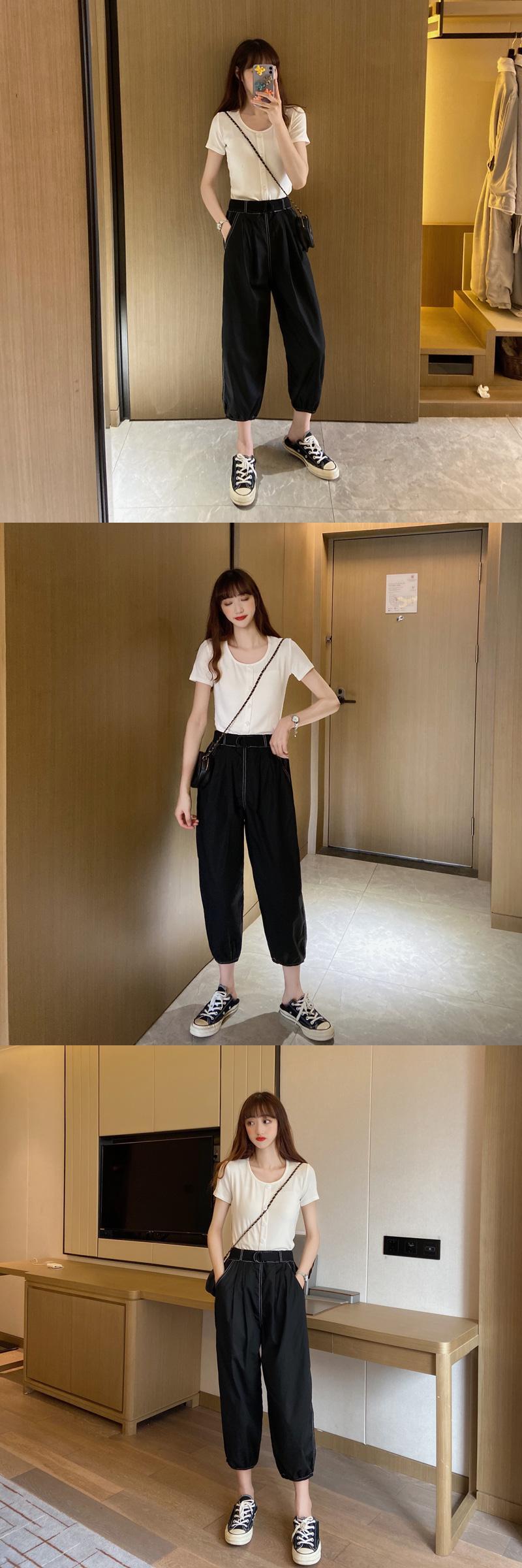 色:ブラックトップ,白のシャツ, パンツ,黒いズボン,白いズボン