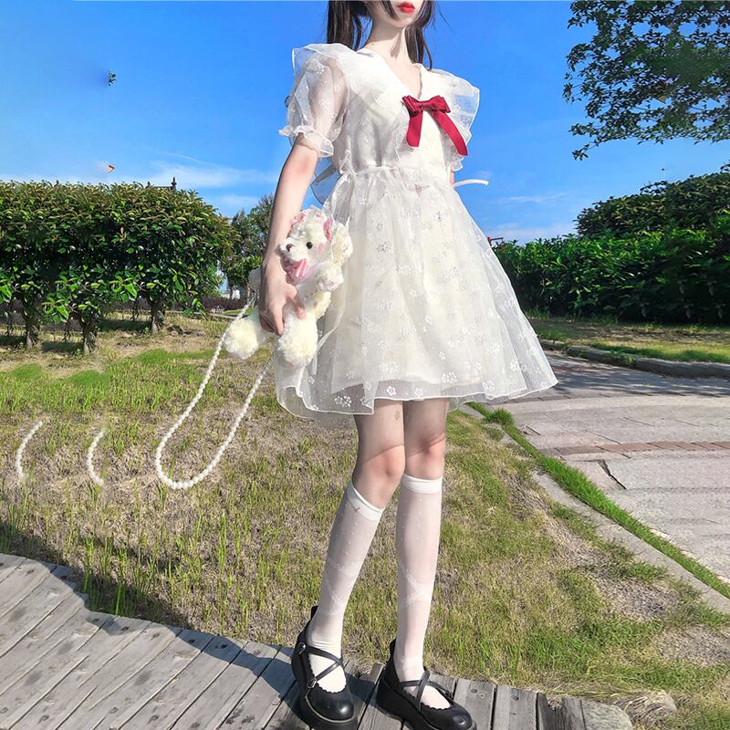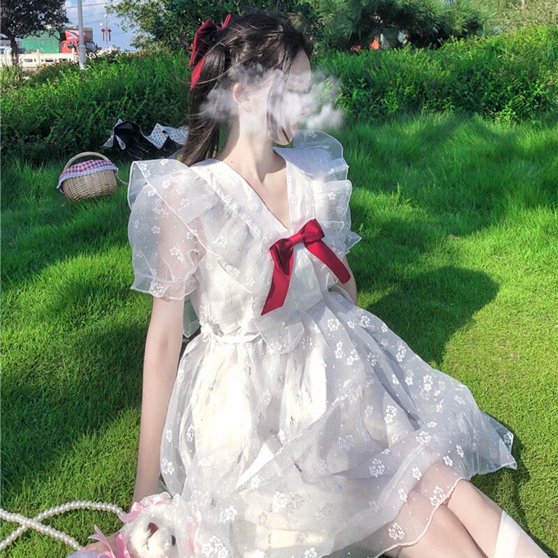 ✞ チュール花柄シフォンりぼんフリルワンピースドレスOP☆着痩せ スウィート フラワーデザイン ✞ゴスロリ SM ミリ 甘ロリ クラロリ 和ロリ エレガント 黒ロリ 姫ロリ 華ロリ BB-BB6022460