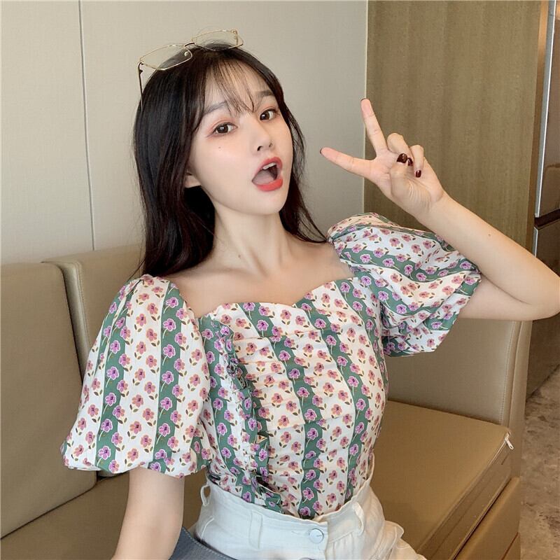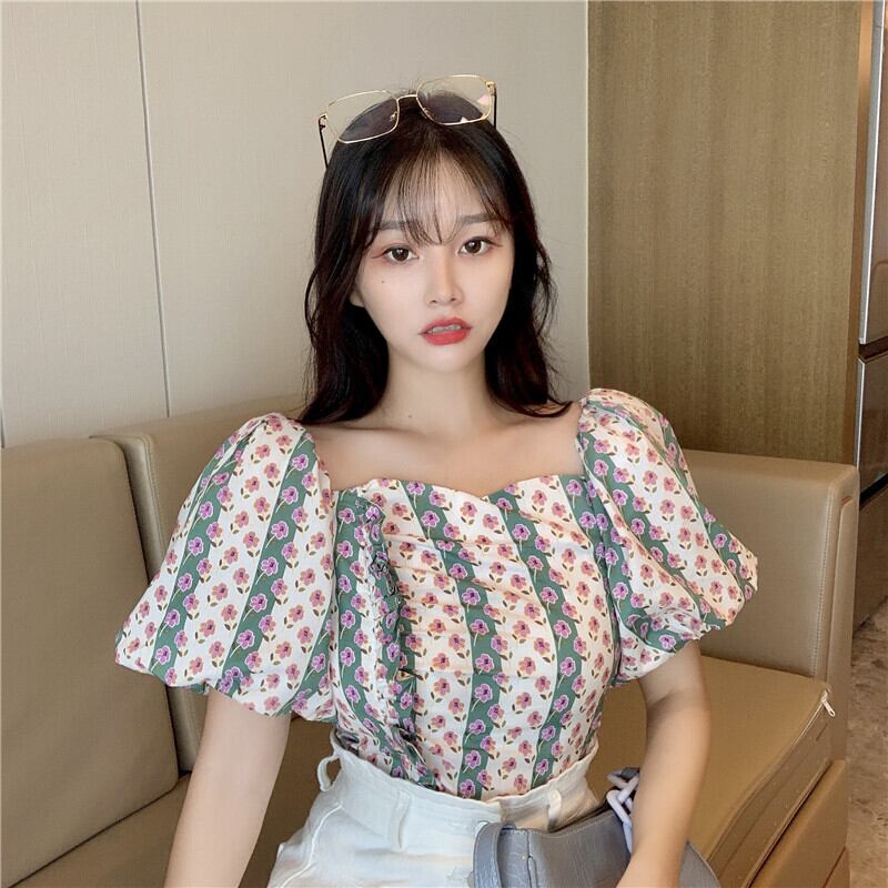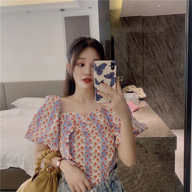 ✞ 花柄プリーツスリーブショートシャツブラウス スクウェア ✞ゴスロリ SM ミリ 甘ロリ クラロリ 和ロリ エレガント 黒ロリ 姫ロリ 華ロリ BB-BB1420380