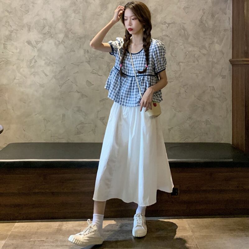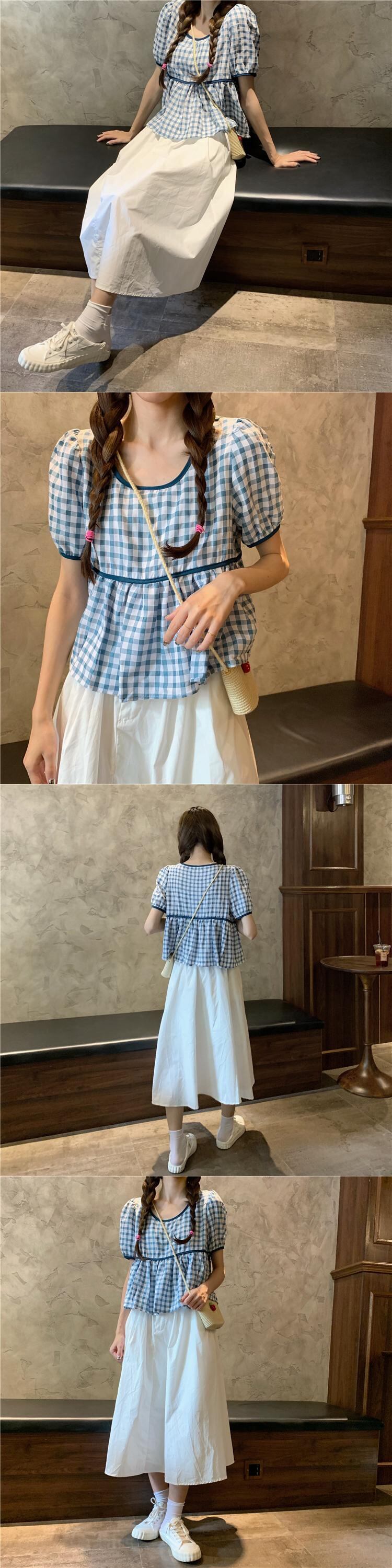 色:ブラックラティスシングルピース,ブルーグリッドシングルピース,ワンピーススカート