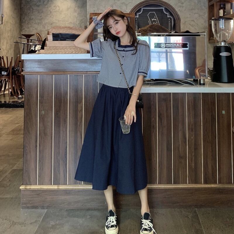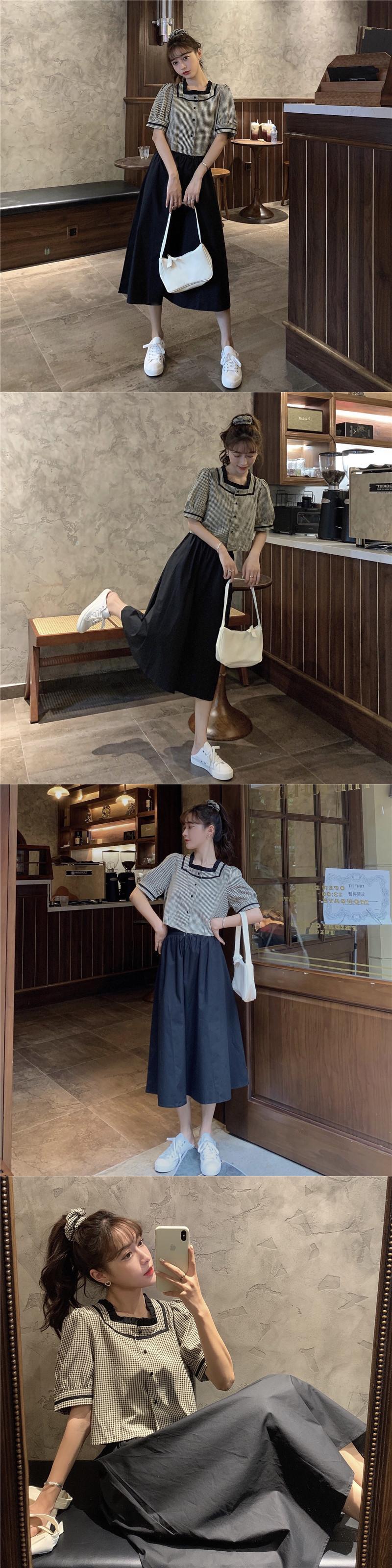 色:ブラックチェック柄トップ,ブルーチェックトップ,黒スカートワンピース,ブルースカートワンピース