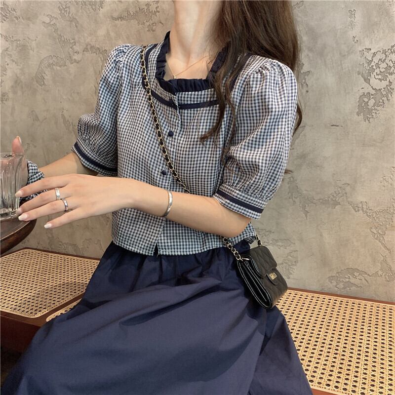 ✞ スタンダードチェック柄ショートスリーブトップス スカート レトロ スクウェア ✞ゴスロリ SM ミリ 甘ロリ クラロリ 和ロリ エレガント 黒ロリ 姫ロリ 華ロリ BB-BB5790489