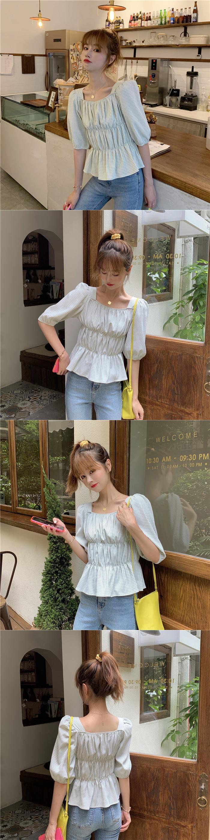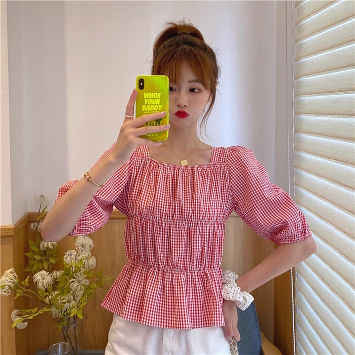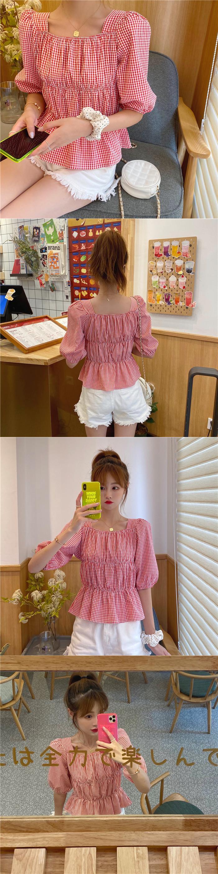 ✞ チェック柄スリーブショートシャツブラウスきれいめ☆ウエストすっきり☆着痩せ レース スウィート スクウェア ✞ゴスロリ SM ミリ 甘ロリ クラロリ 和ロリ エレガント 黒ロリ 姫ロリ 華ロリ BB-BB2262911